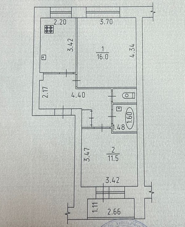 Балкон, лоджия 1 балкон