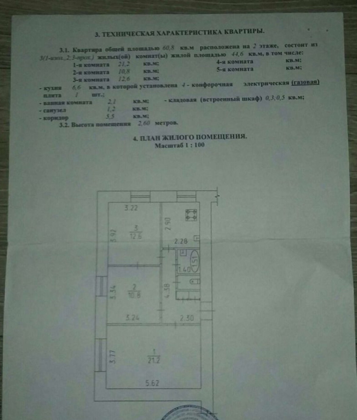Общая площадь 60.8 м2