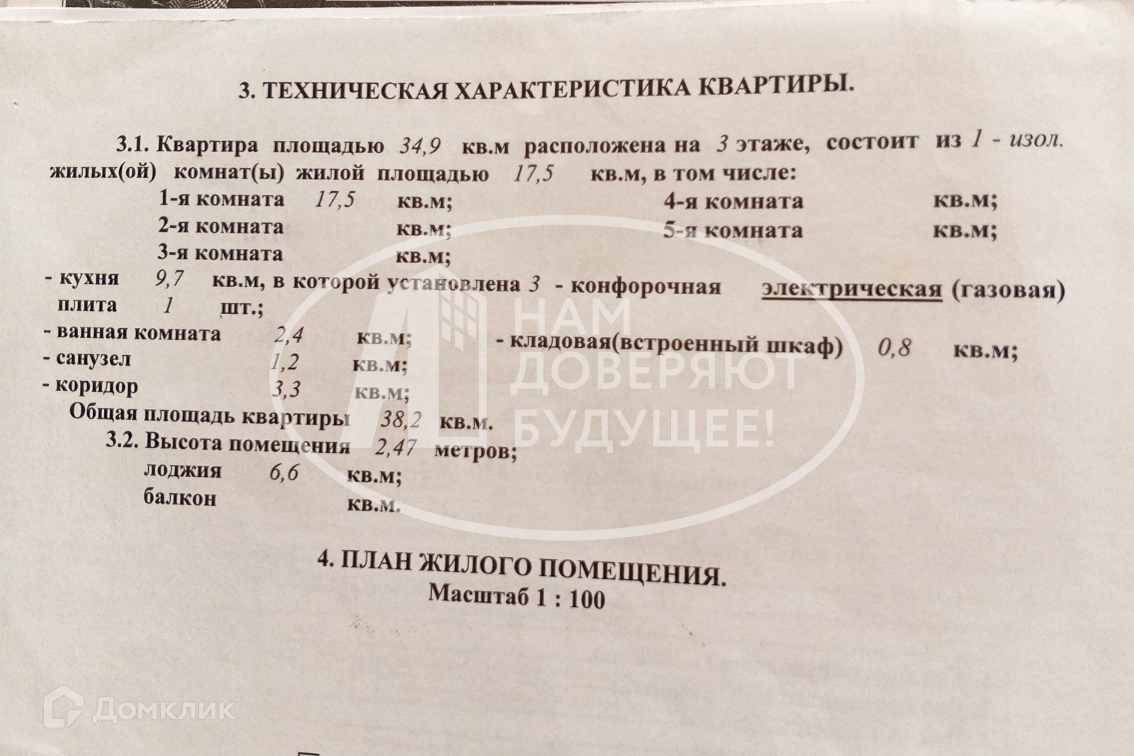 Общая площадь 34.9 м2