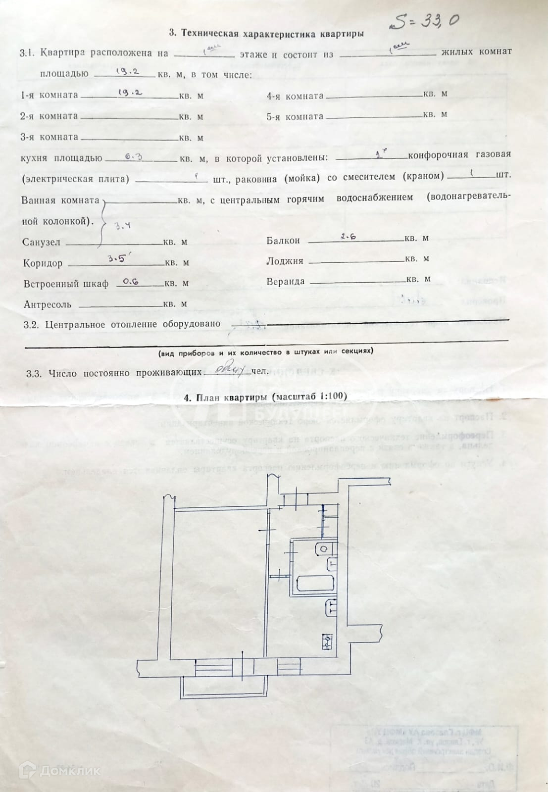 Общая площадь 33 м2