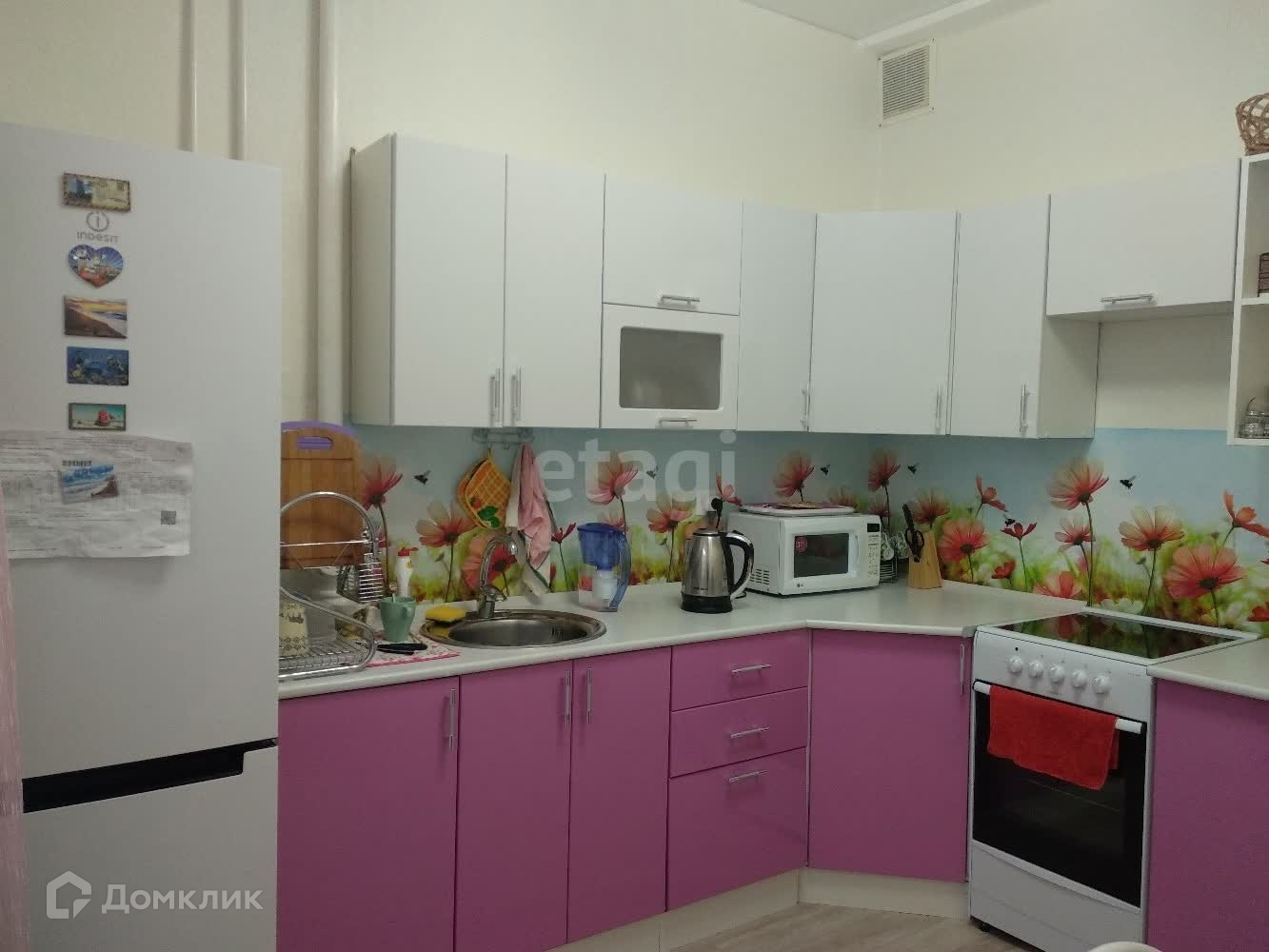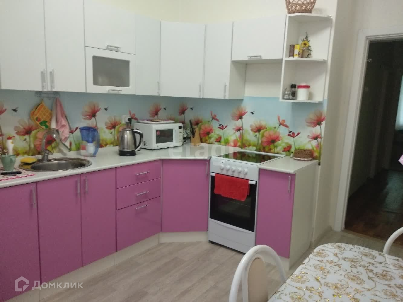 Натяжные потолки во всех комнатах. Ламинат в комнатах, остальное - линолеум.Новым хозяевам остаётся кухонный гарнитур,в комнатах остаётся частично мебель по договоренности.