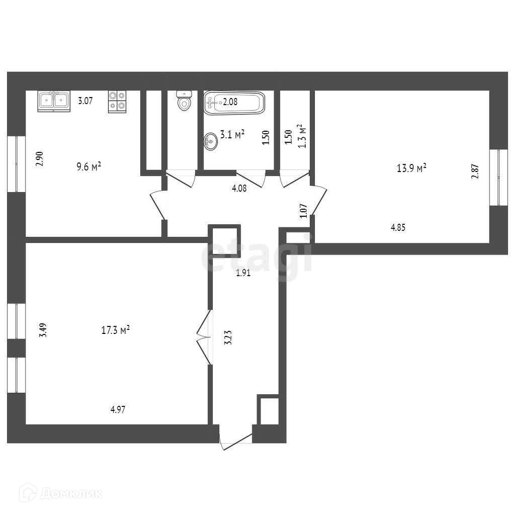 Общая площадь 57.3 м2