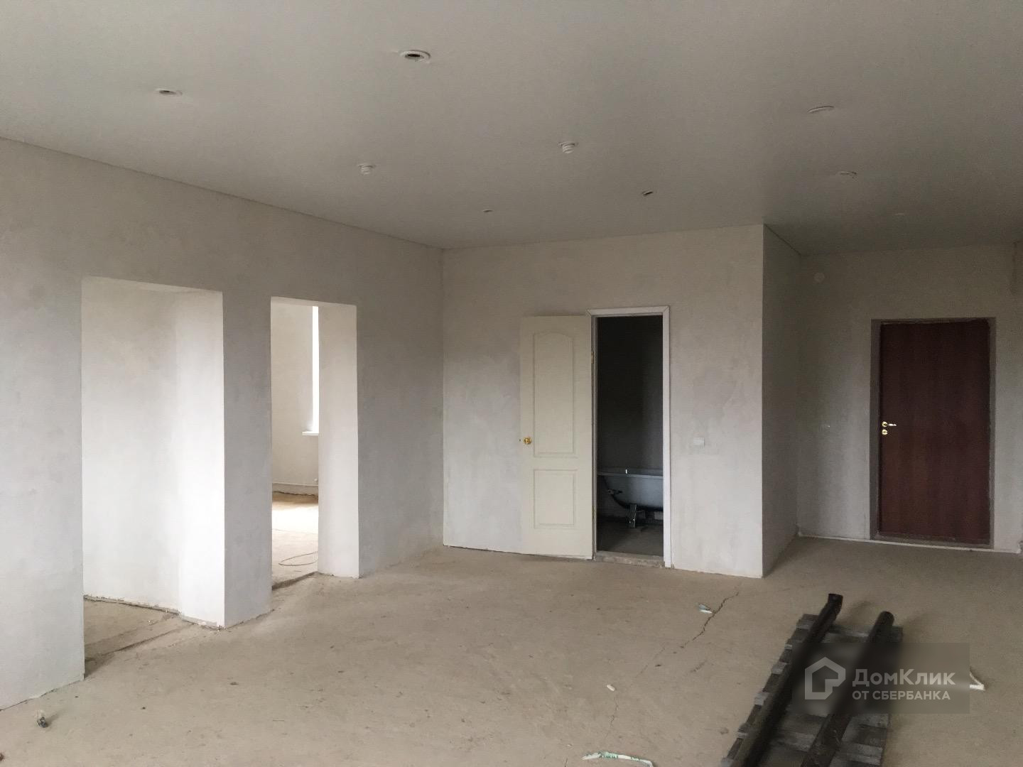 Стены и полы выровнены, везде установлены натяжные потолки и пластиковые окна.