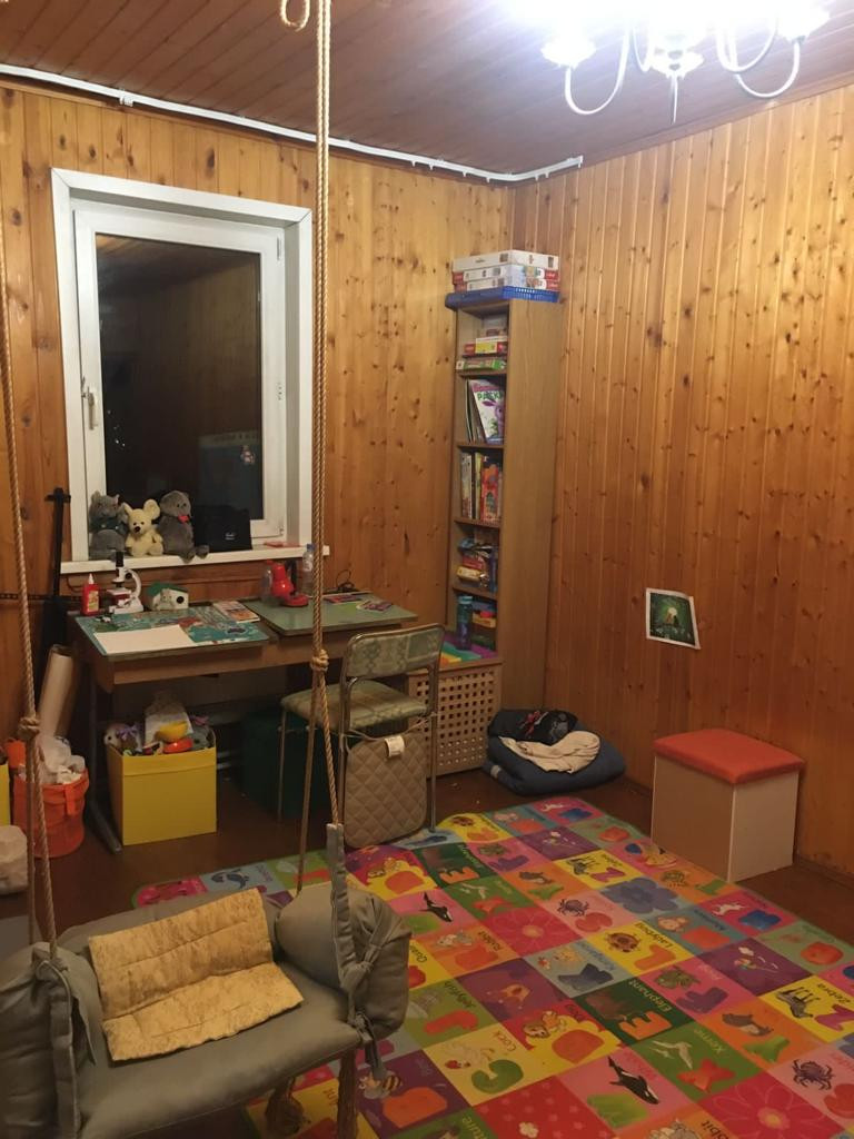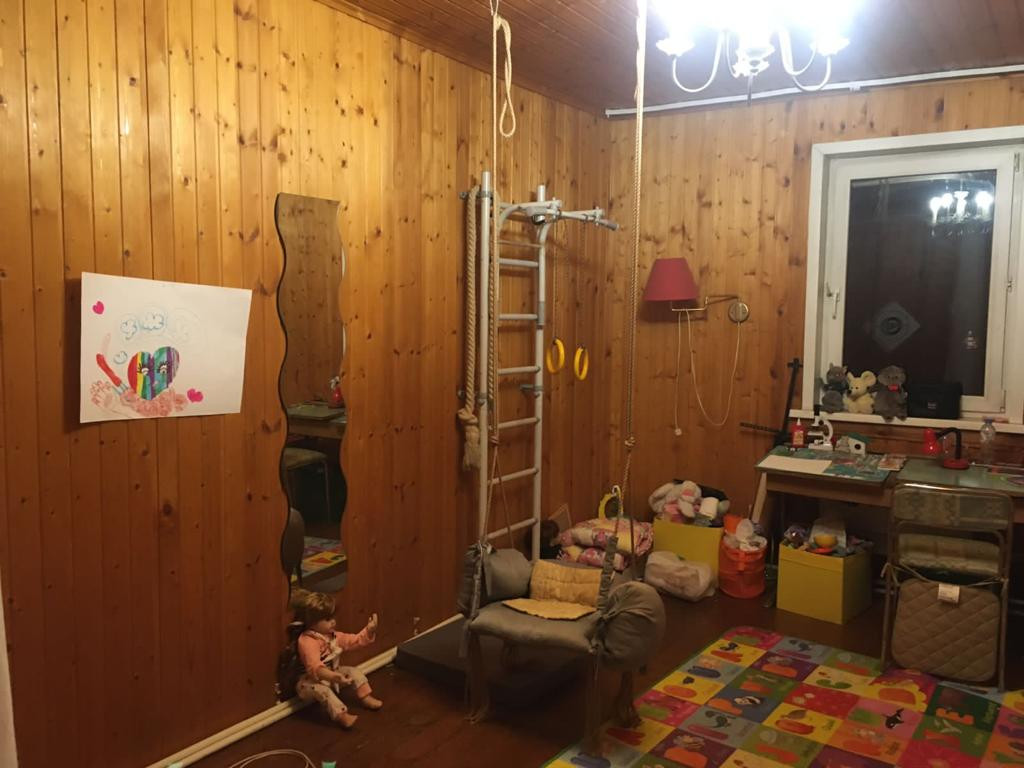 Дом изнутри обит вагонкой, стеклопакеты, пол-доска. Высота потолка певого этажа-3 м, второго-2,8 м. В доме 11 спален, кухня-гостиная, два санузла. Два входа в дом. Дом не узаконен.