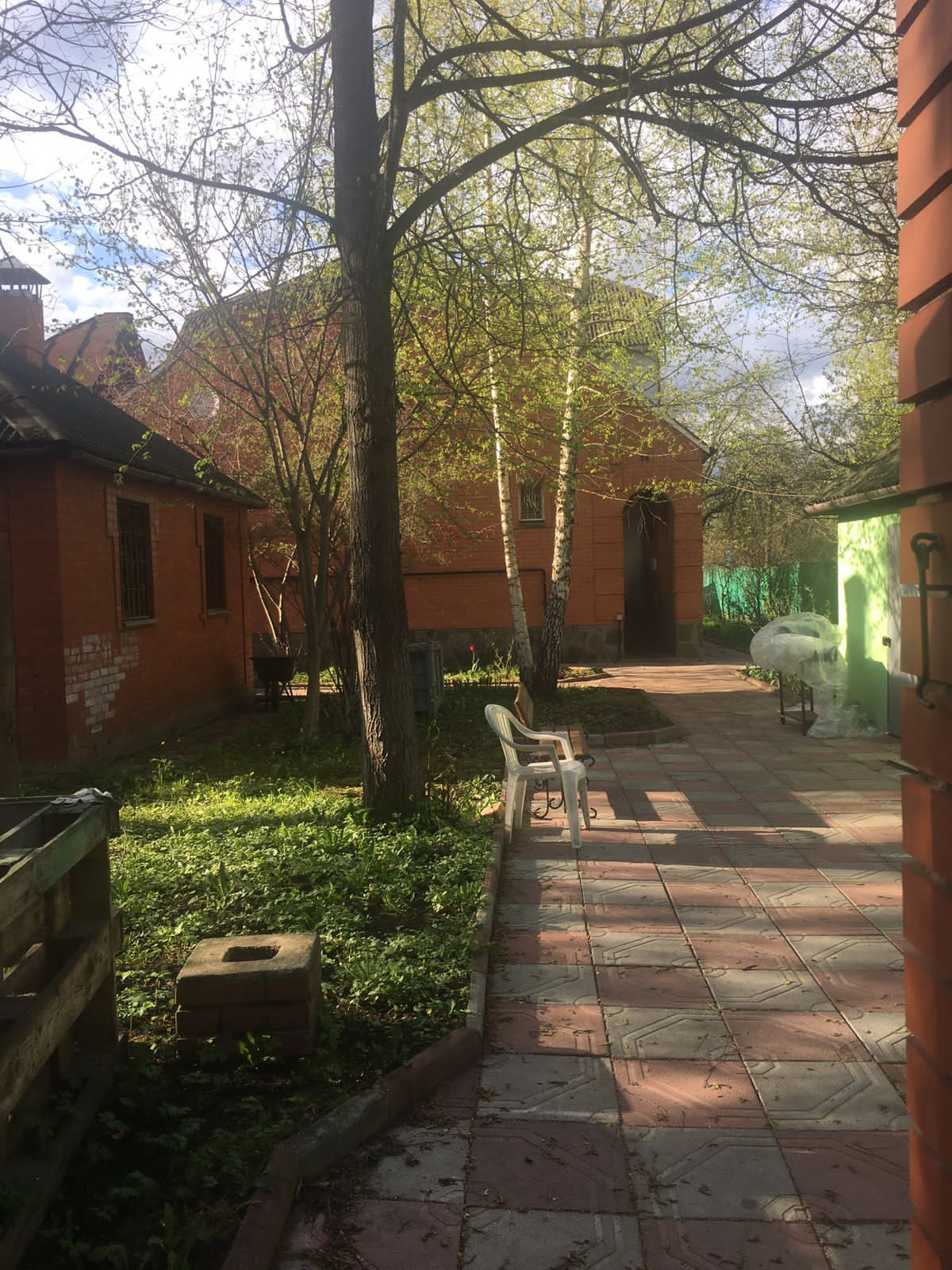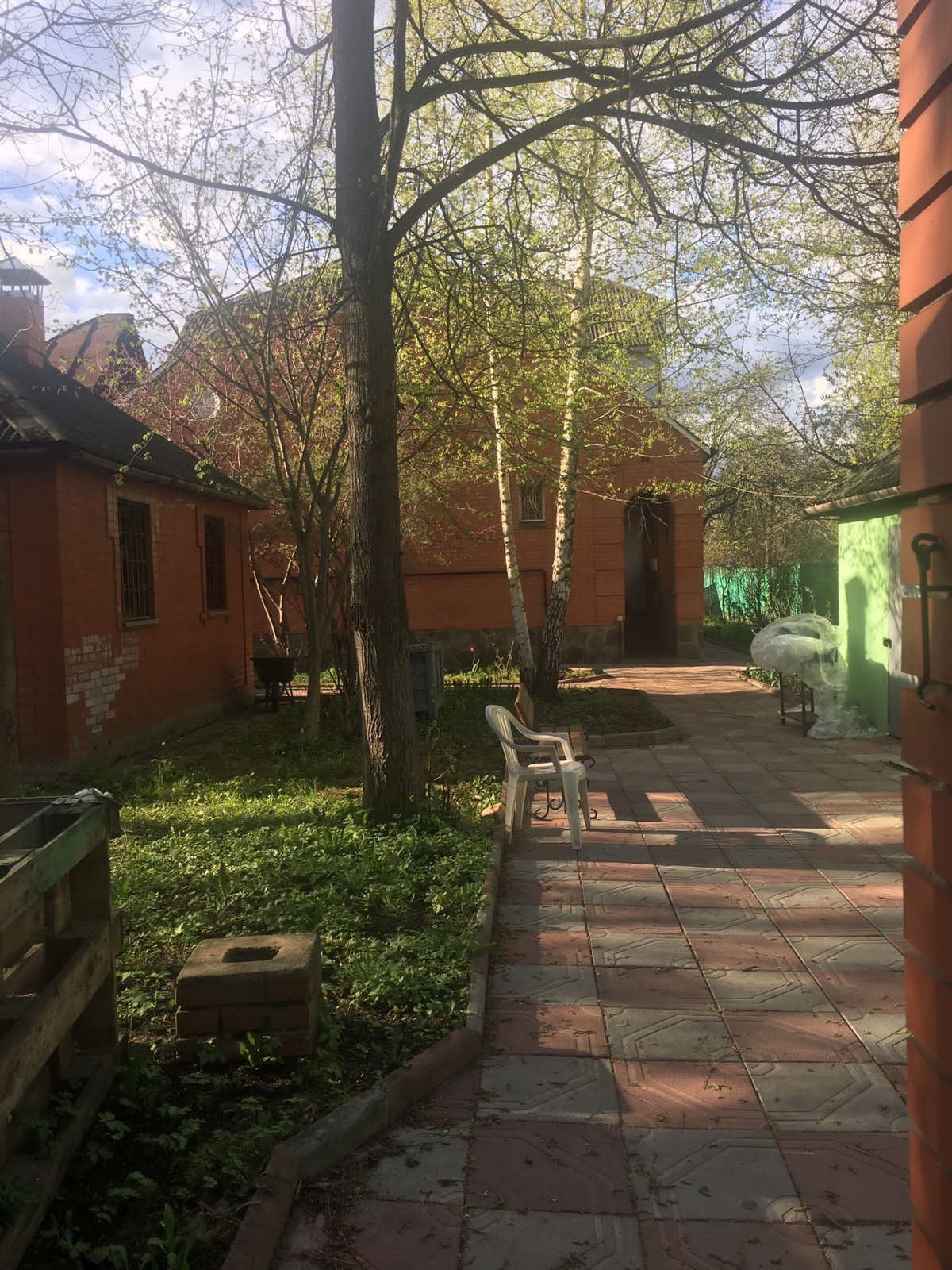 На участке помимо основного дома расположены маленький дом из кирпича, беседка кирпичная, гараж на две машины.  Все очень добротно и основательно.