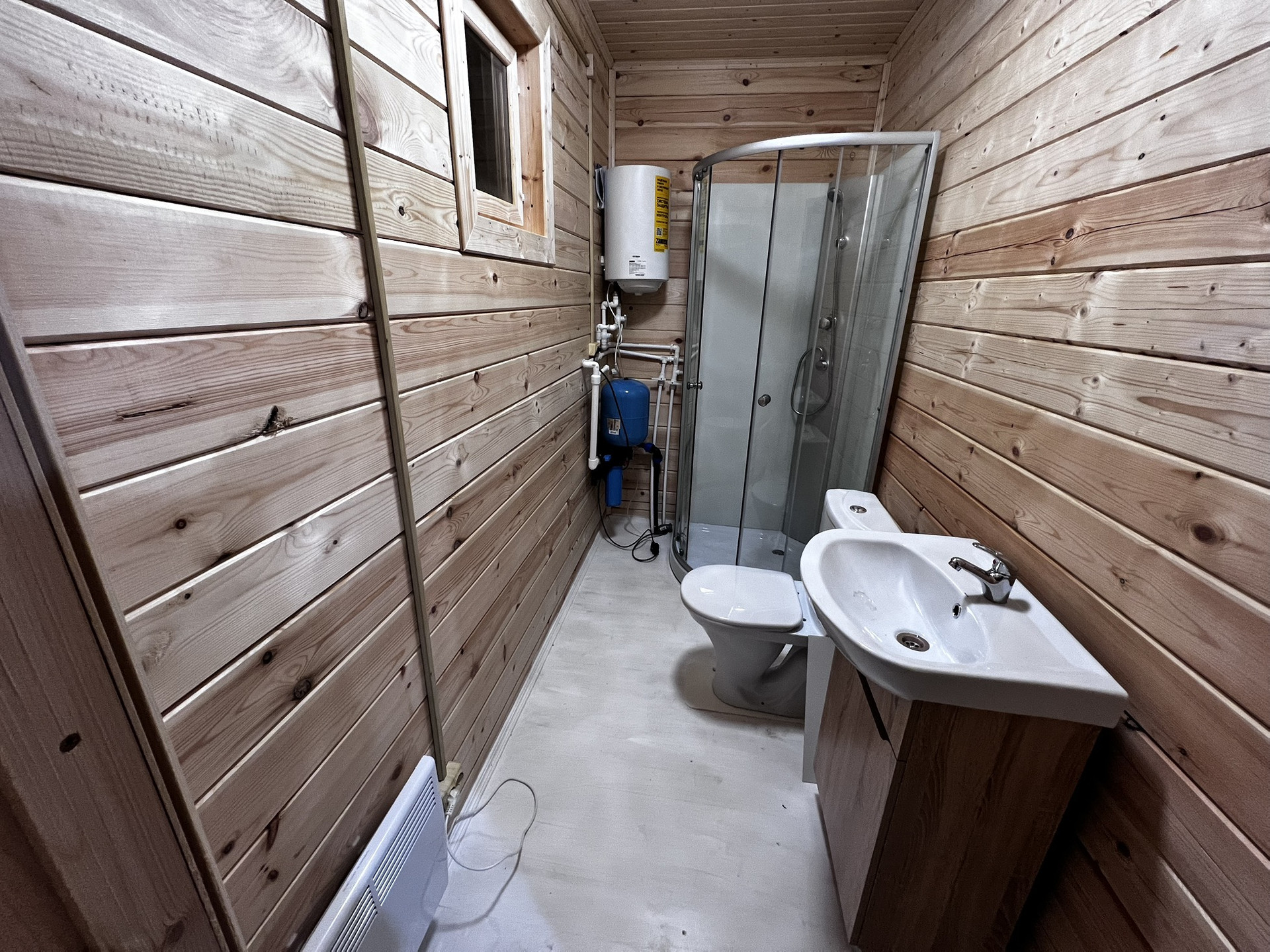 На первом этаже, просторная кухня-гостиная, санузел с душевой и