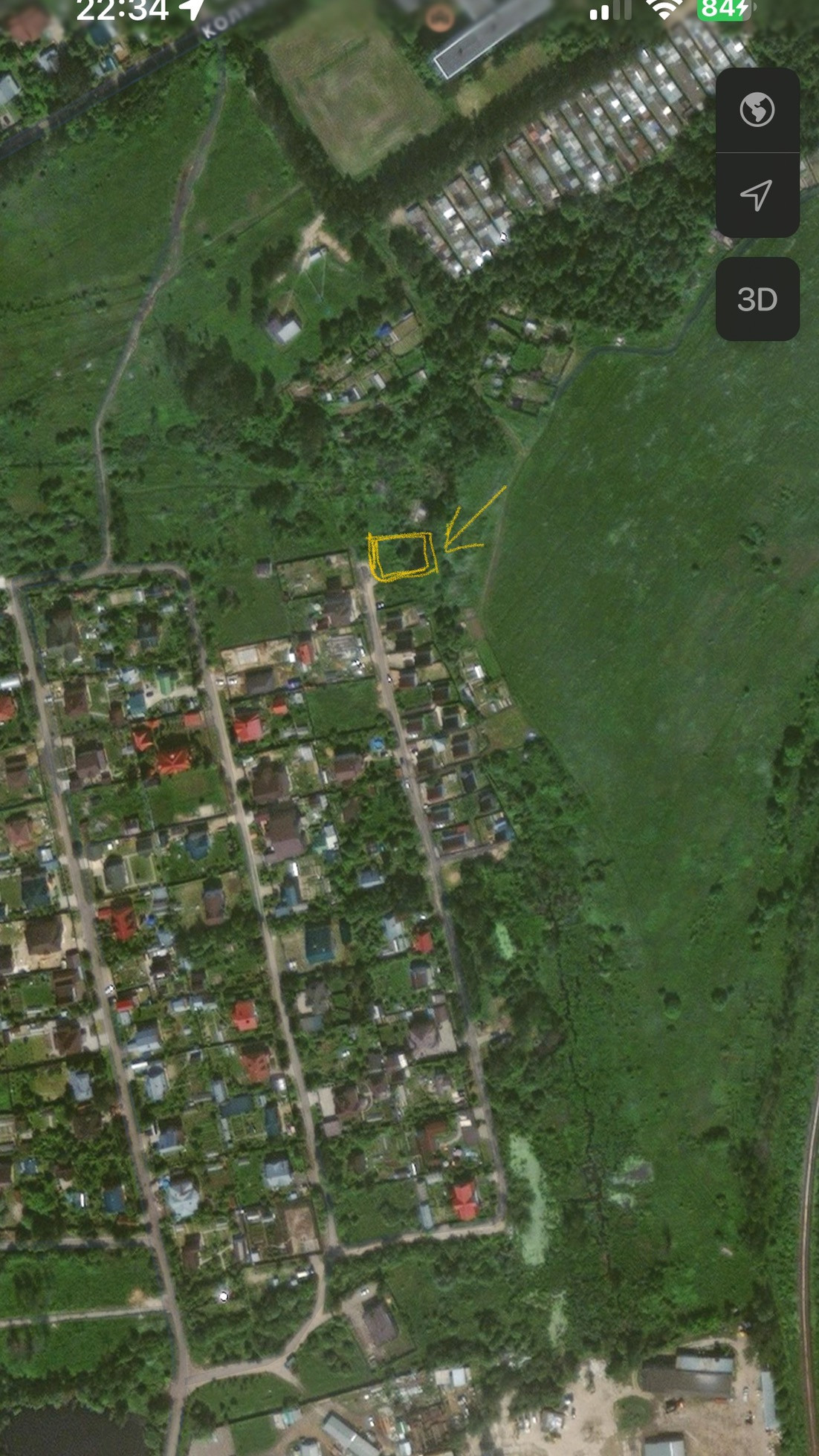 Участок ровный, правильной формы, на окраине микрорайона частных домов, без соседей (границы участка совпадают с границей населенного пункта, а это значит, что выделения смежных участков