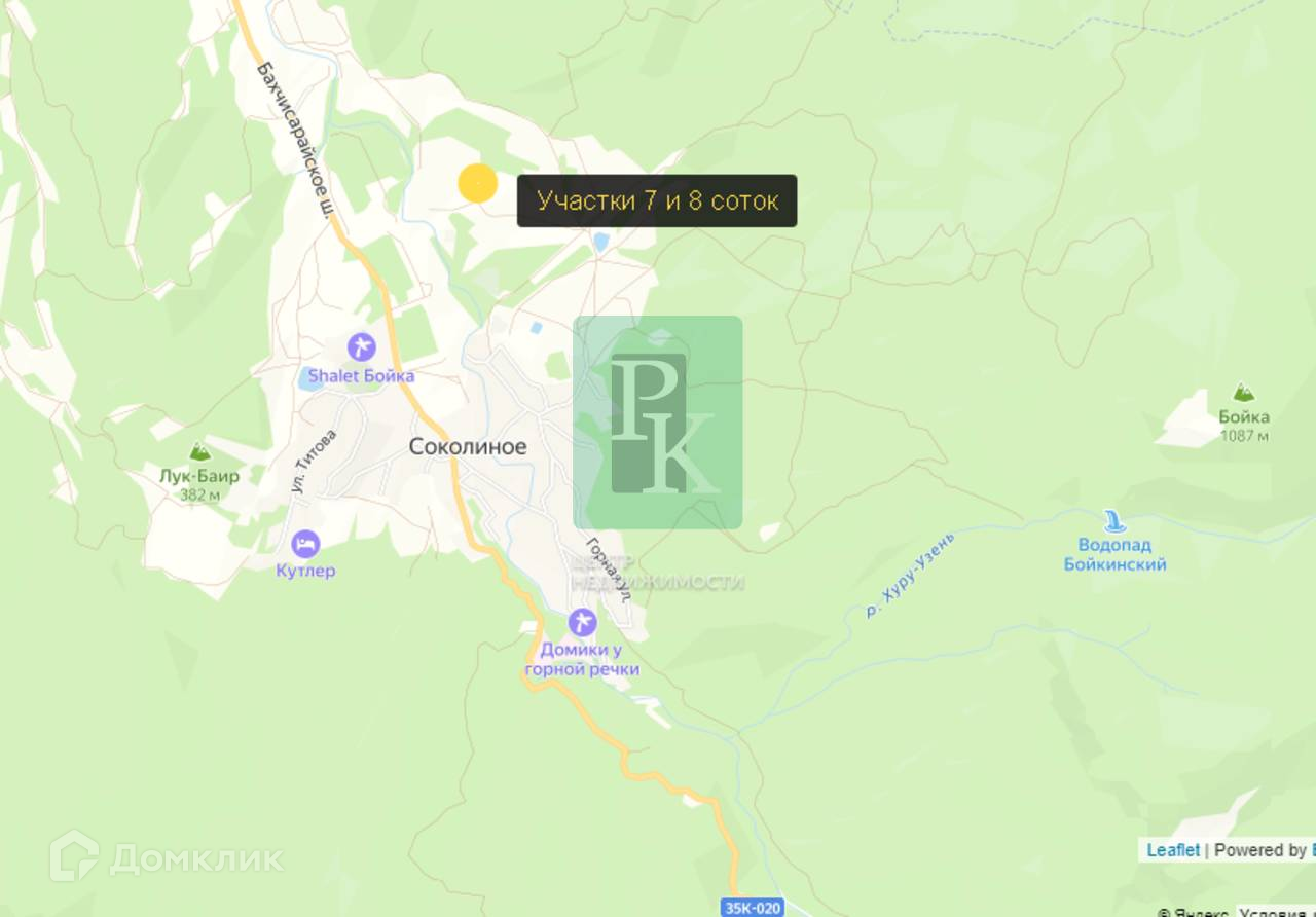 Участок находится возле села Соколиное Бахчисарайского района у подножия горы Бойко. Со всех сторон ограничен реликтовым лесом. Рядом с озерами. С участка открываются шикарные виды на горы. Неподалеку протекает река Кокозка.