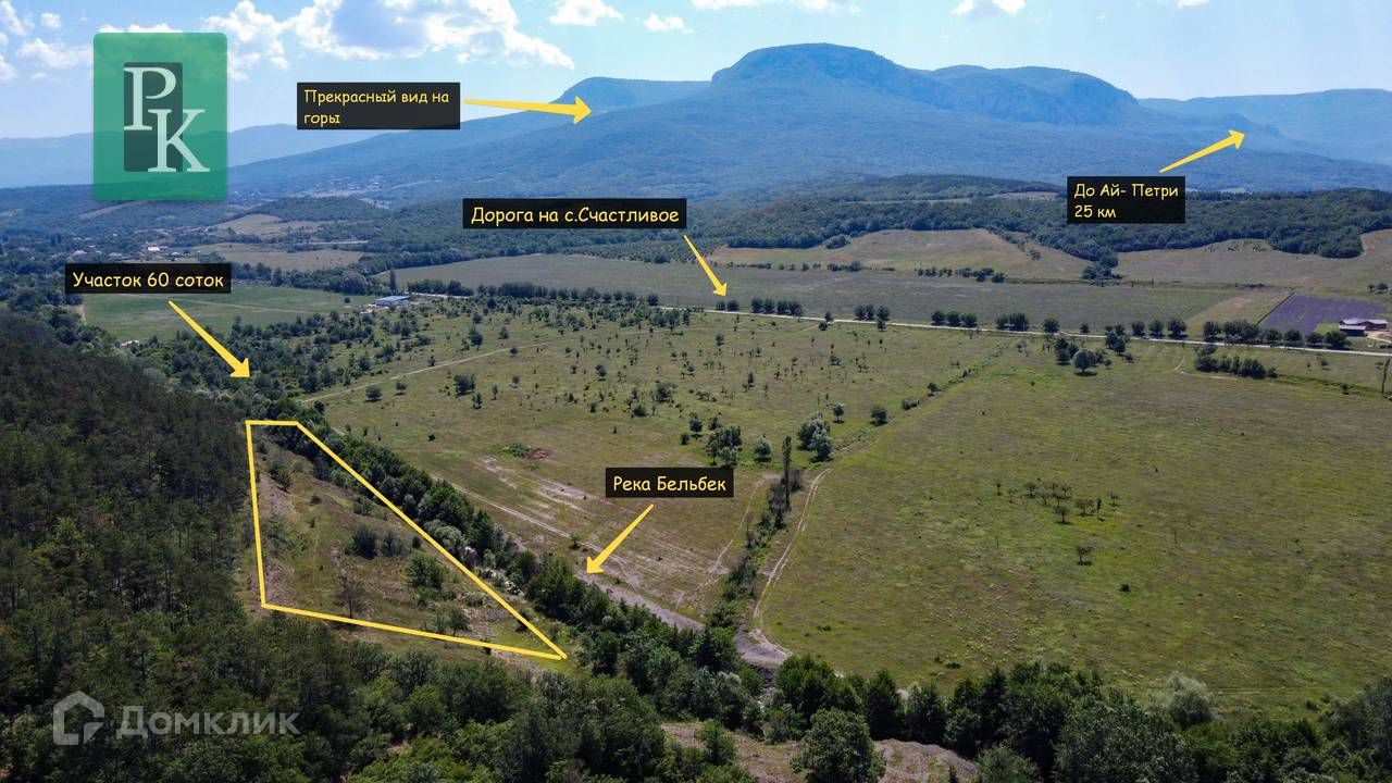 Участок находится в живописном месте с видом на Ай-Петри, вблизи реки Бельбек, вдали от суеты. К участку подходит удобный подъездной путь. Возможна разработка инвестиционного проекта, а также его реализация.