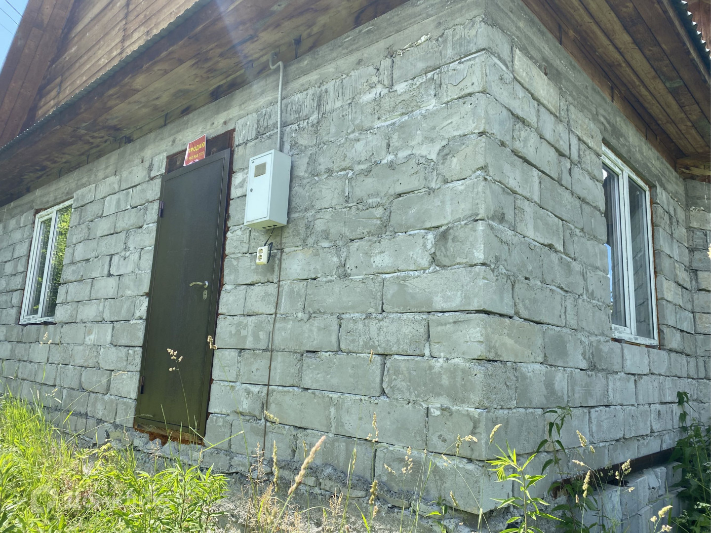 Дом недостроенный 8х8,Газоблок, остановка недалеко.