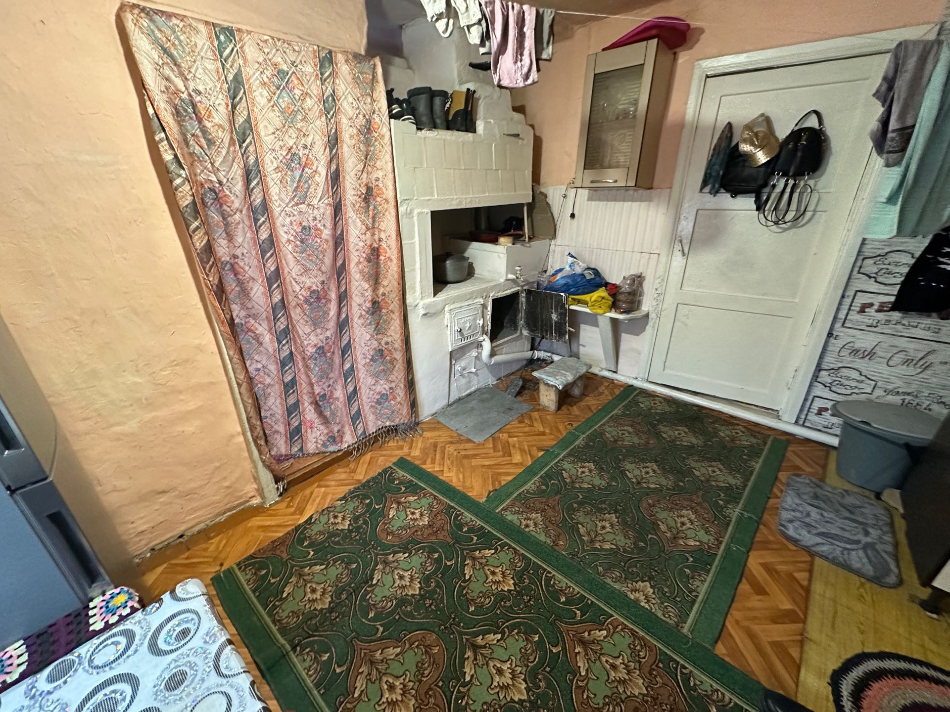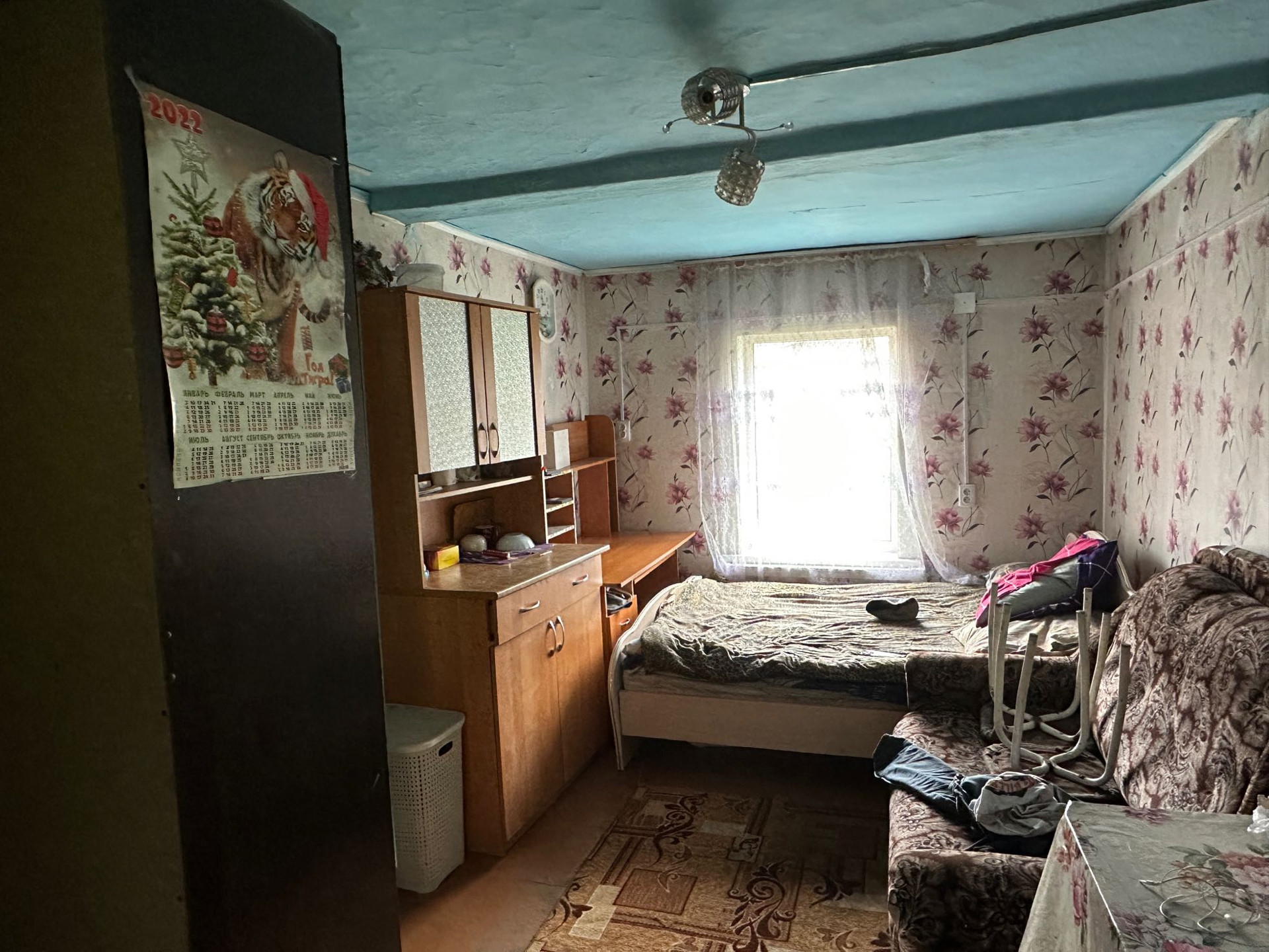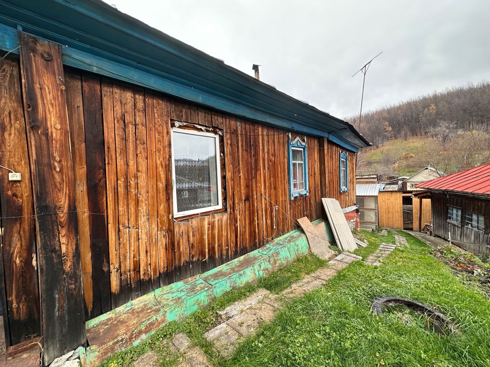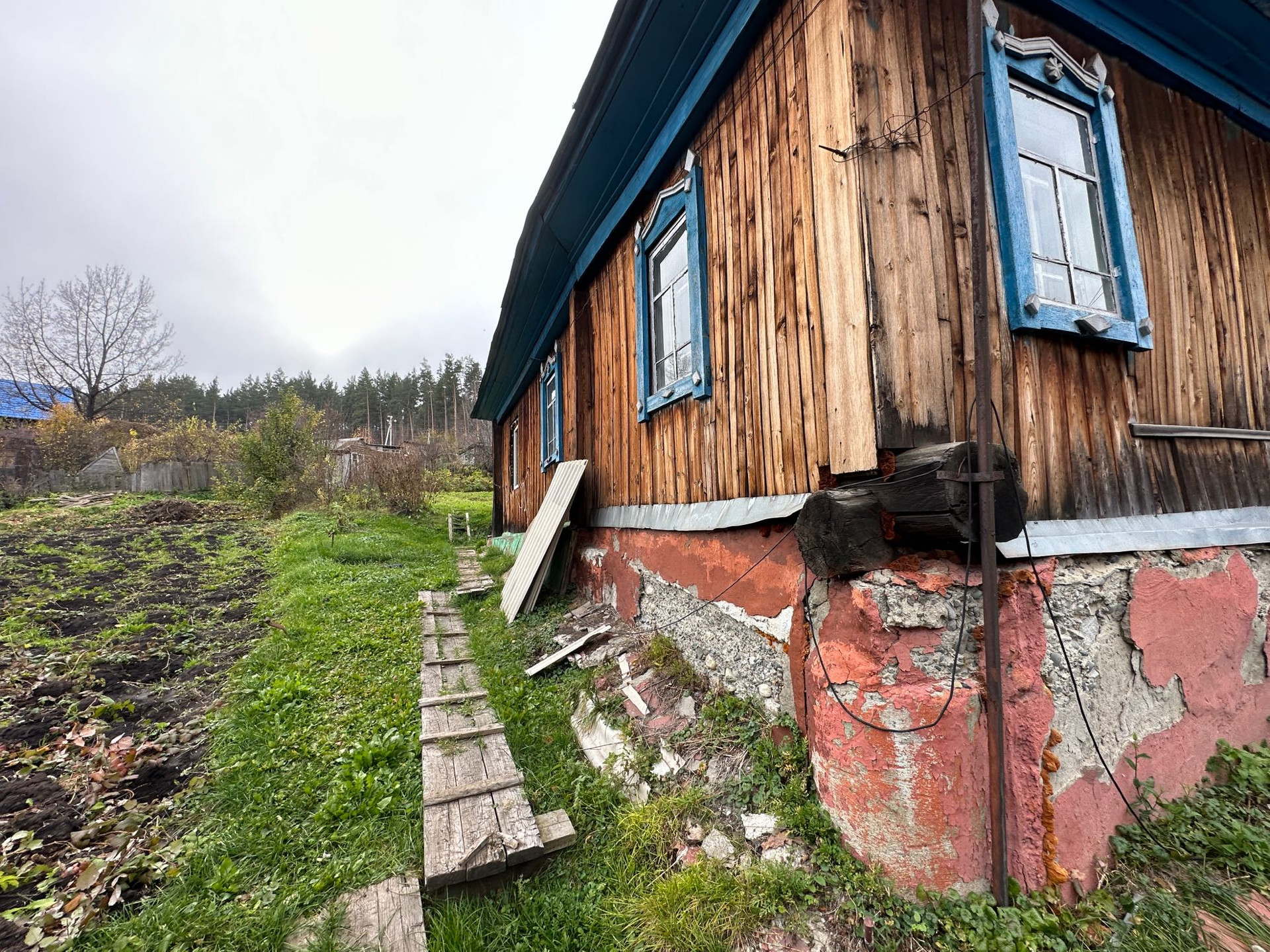 Дом деревянный, не новый, требует ремонта. В нем 3 комнаты, кухня, прихожая, веранда.