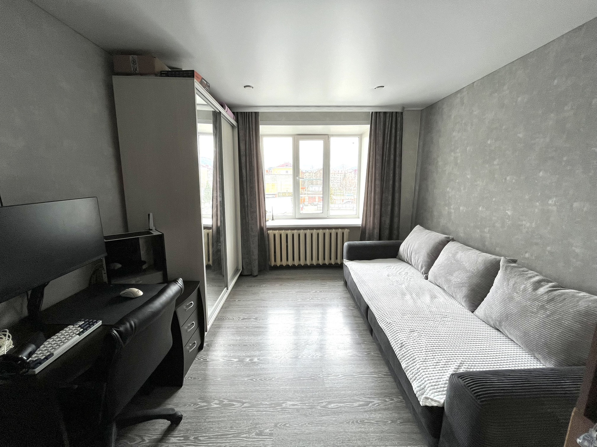 Окна выходят на вокзал, комната светлая, теплая. В прошлом году сделан ремонт, новая проводка. Возможно, какая то мебель останется. Вода в комнате есть, душ и туалет общие. Проведен интернет. Соседи спокойные. Низкие коммунальные платежи. Рядом все коммуникации.