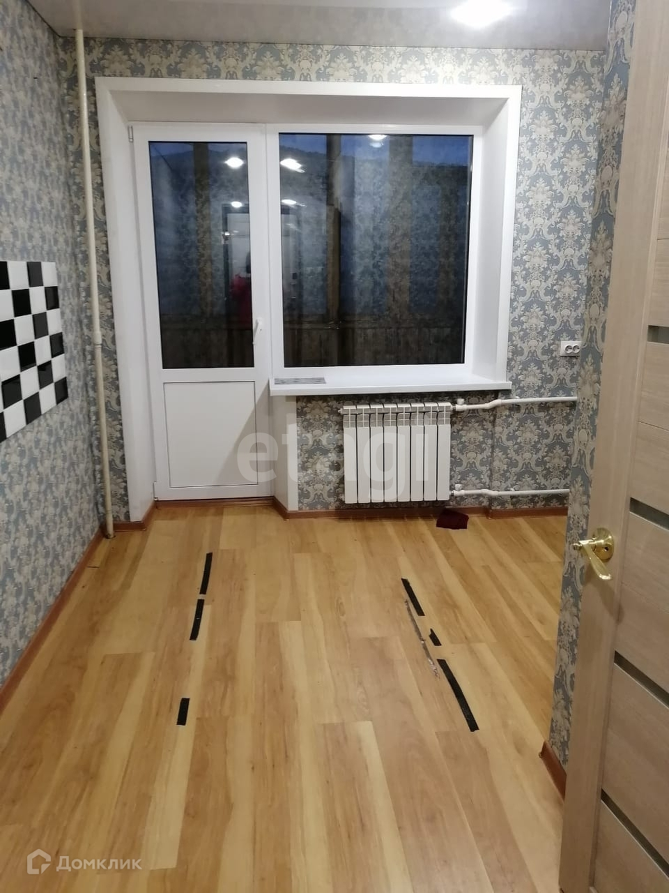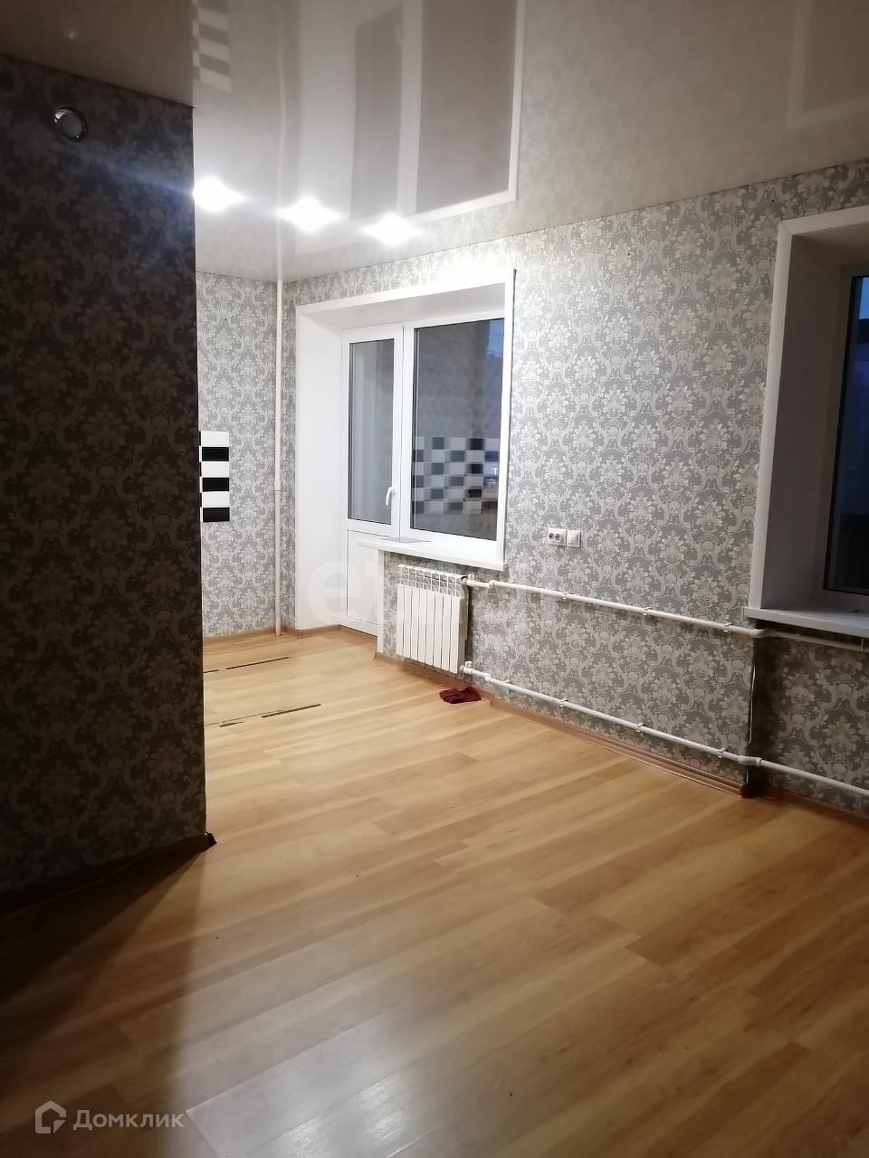 Сделан свежий ремонт (новые окна, новые регистры, выровнены стены, натяжной потолок со светильниками, ламинат, новая дорогая дверь)