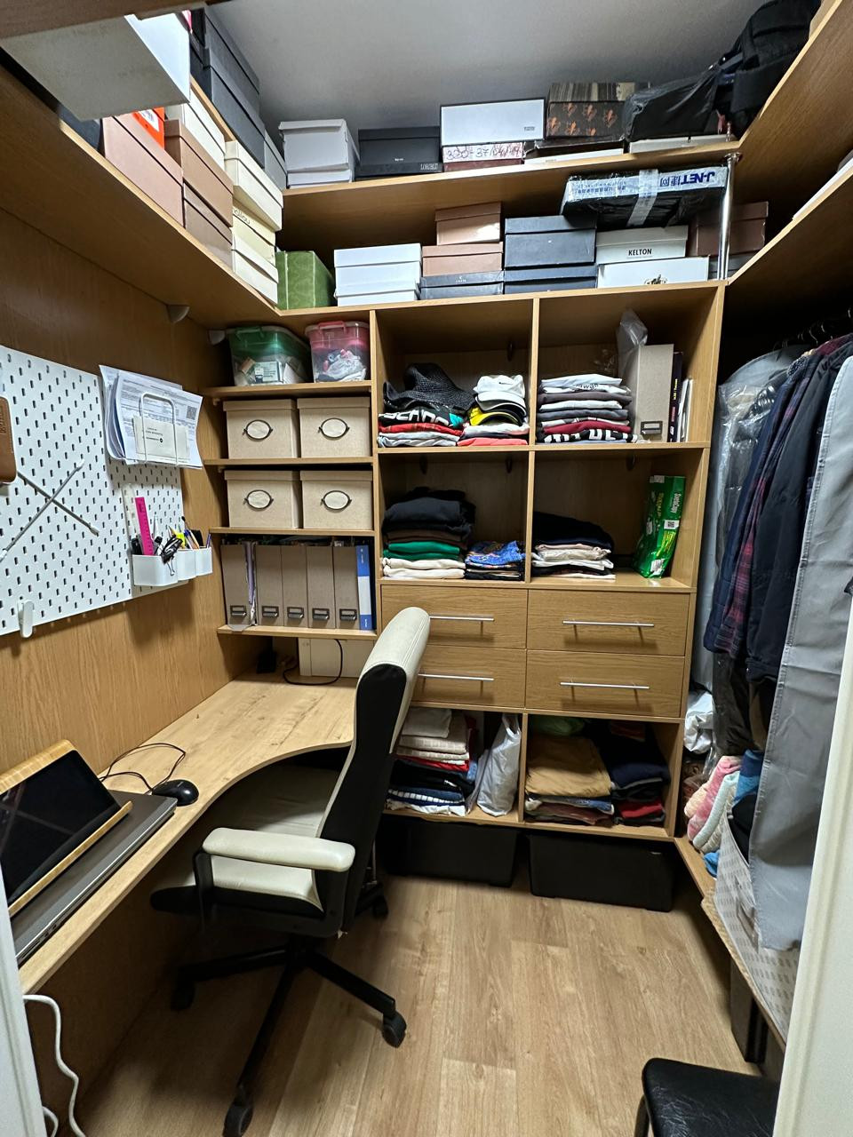 - гардеробная с оборудованием, рабочим уголком,