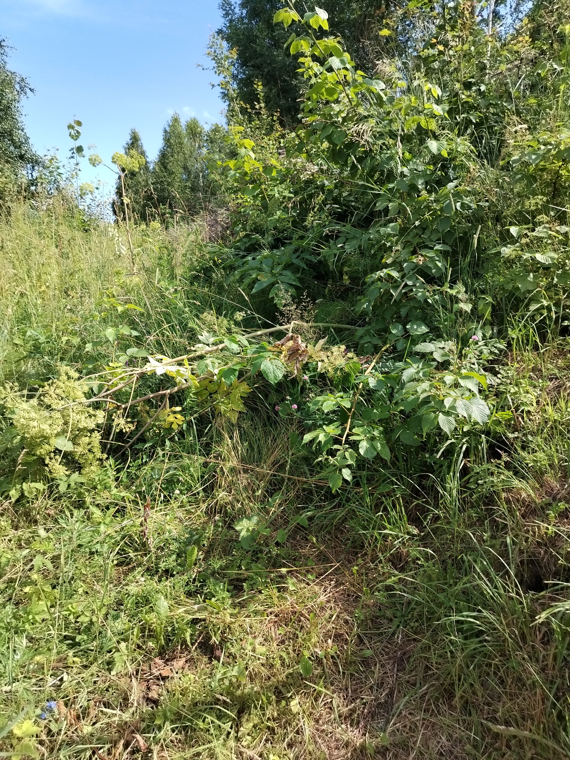 Заросший. На дороге тоже трава, но рядом везде дома стоят