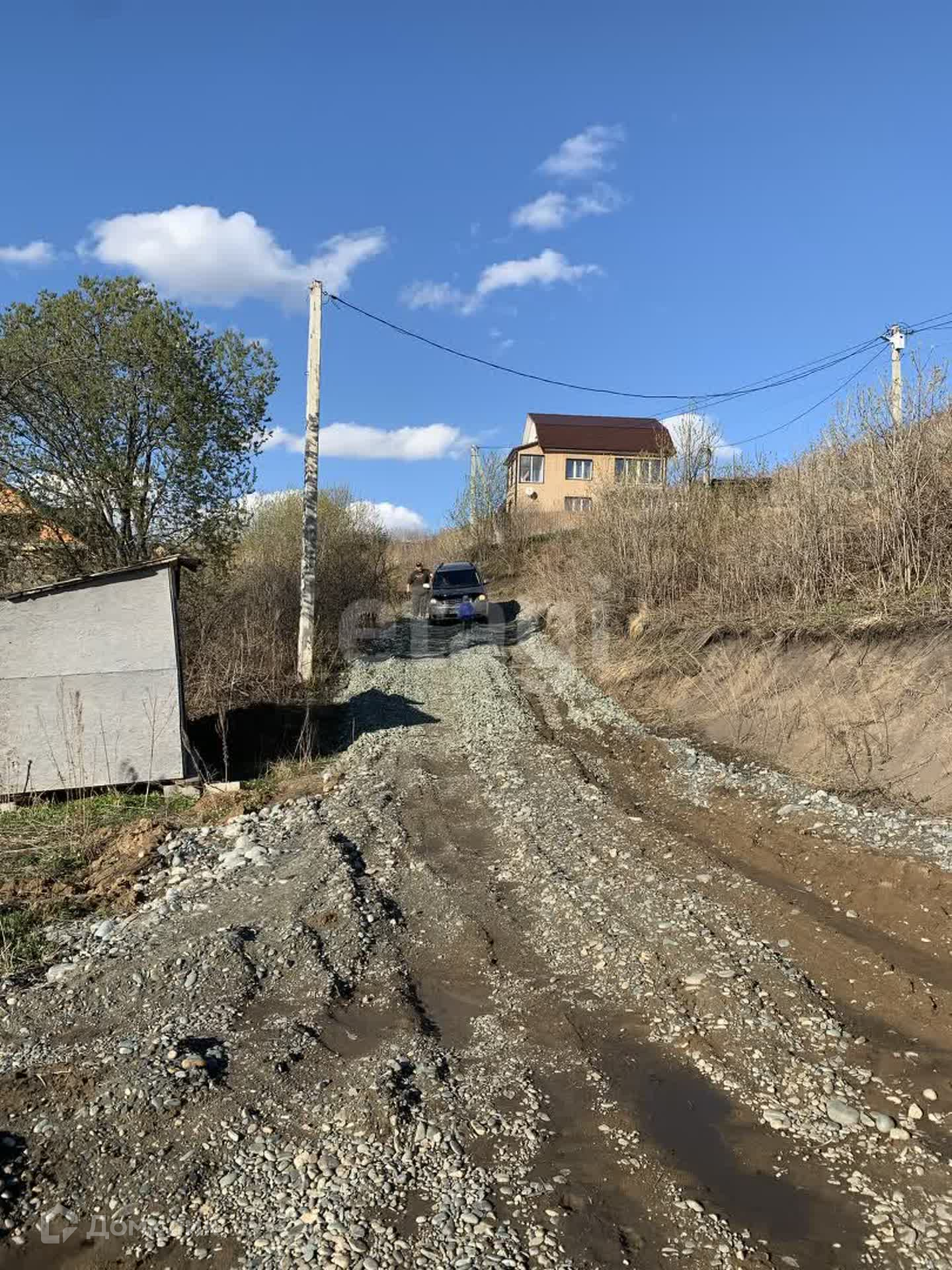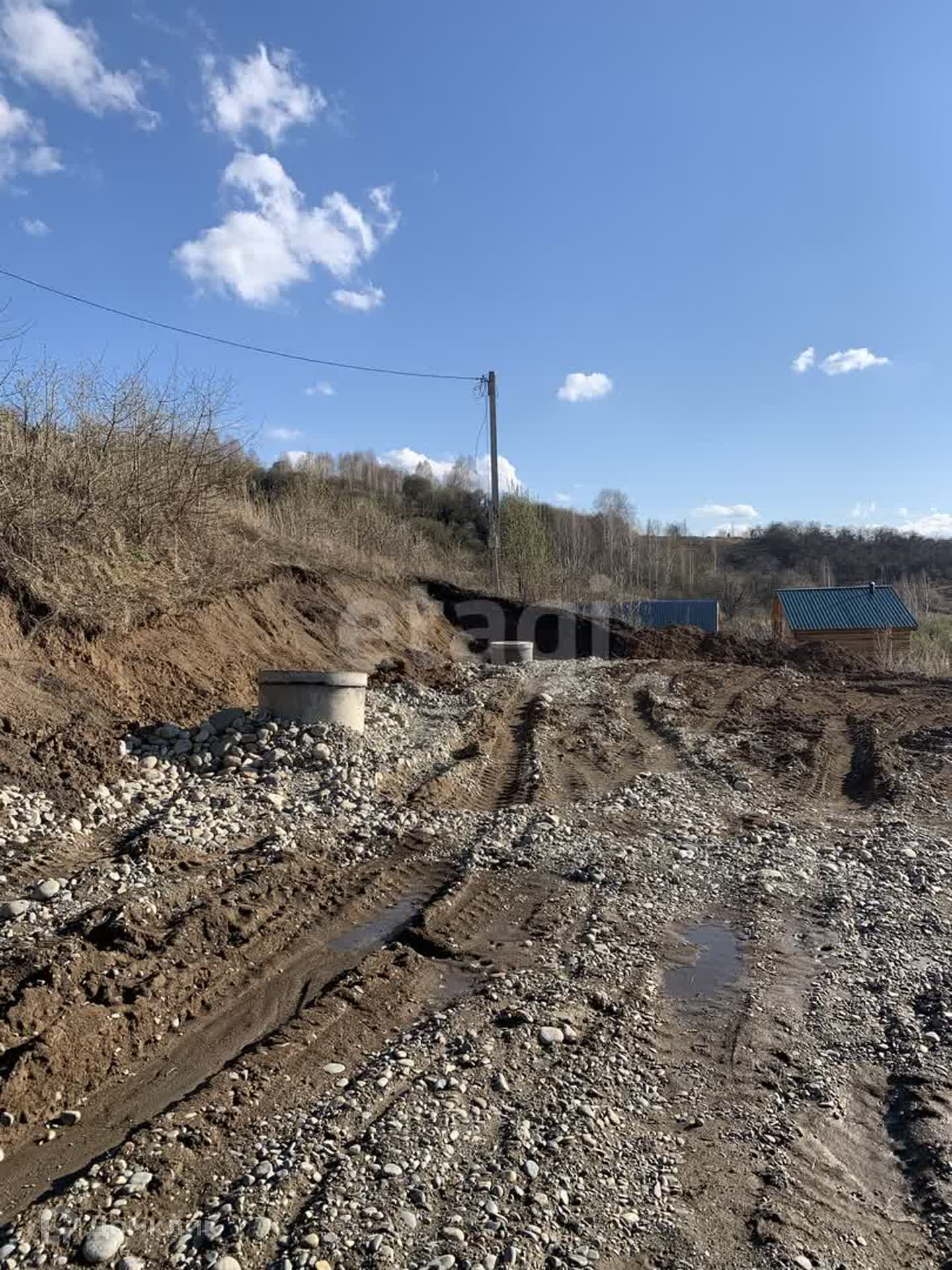 Сделан заезд ,планировка. Участок осушен, проложена дренажная система, участок будет сухой. Круглогодичный подъезд.