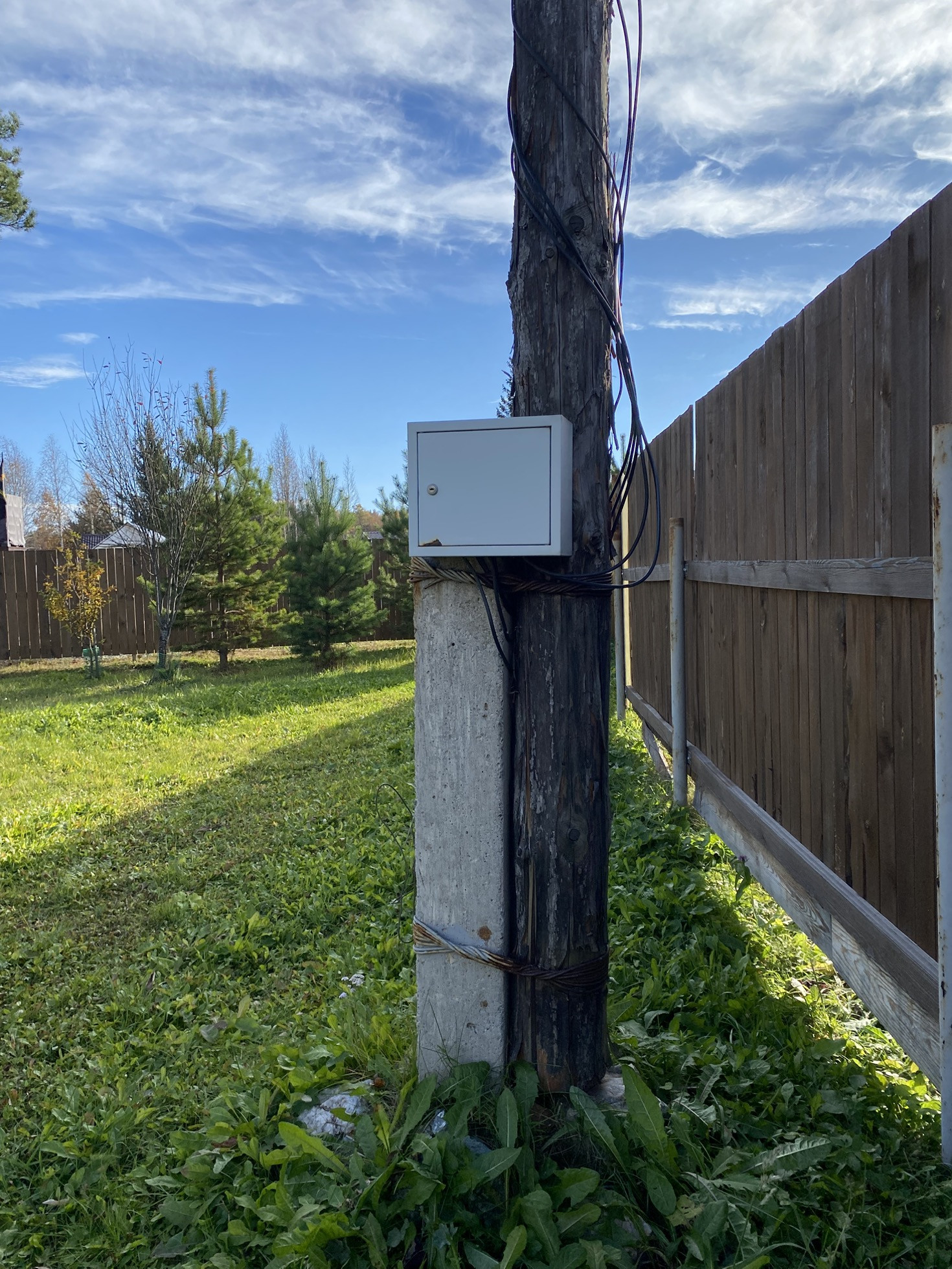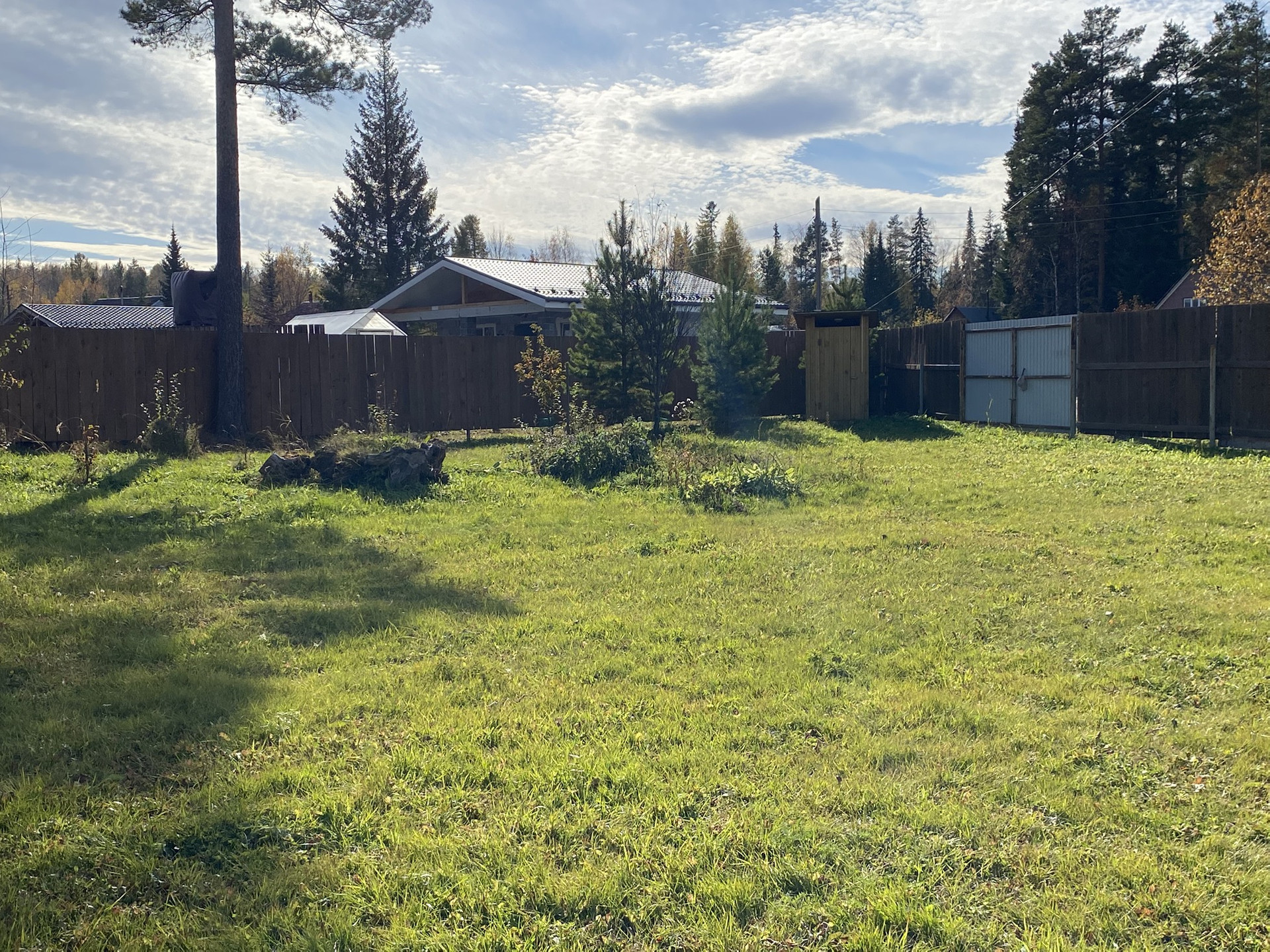 На участке свой собственный электростолб. Участок выровнен под газон. Со стороны дороги оконавлен.