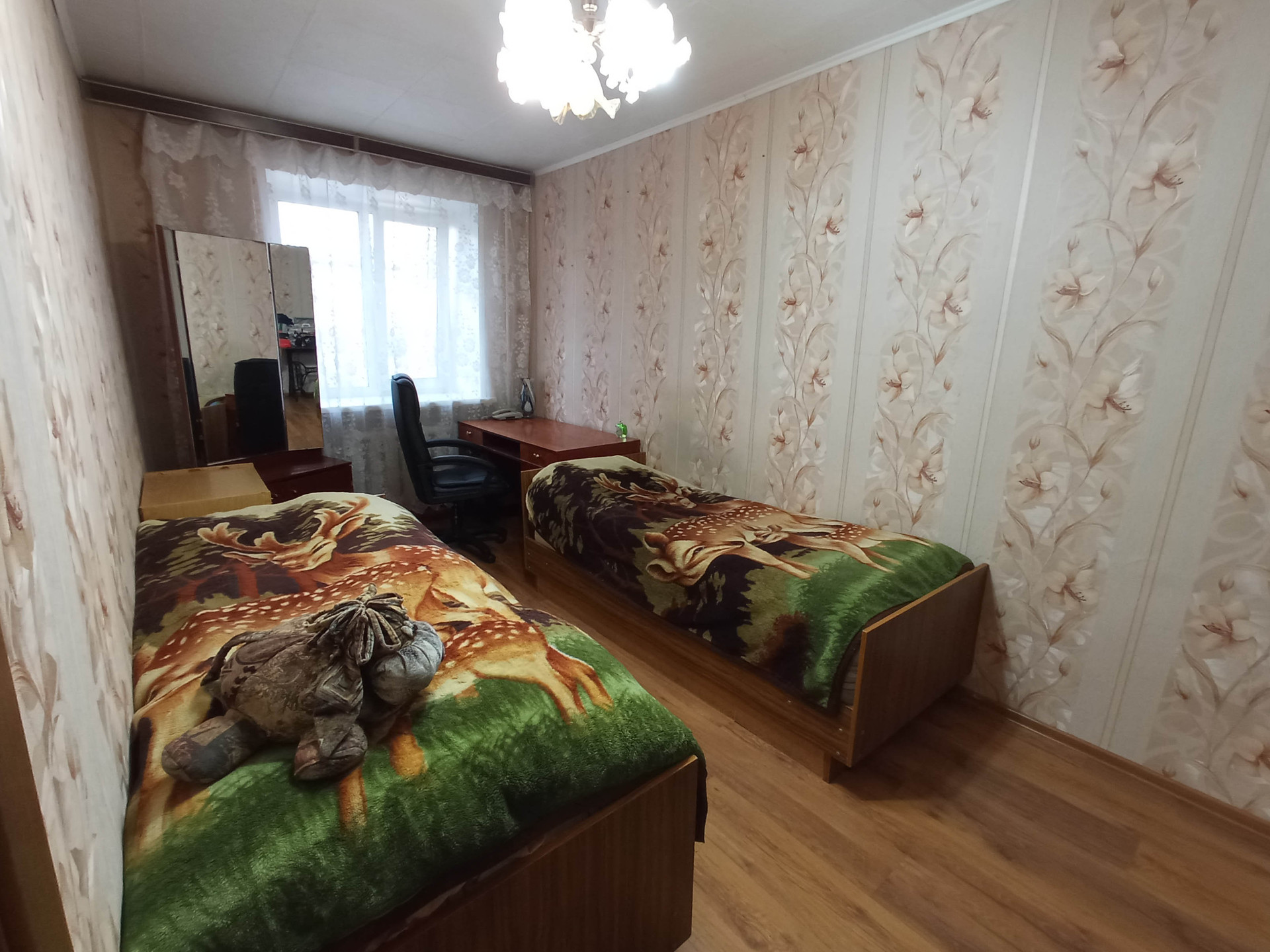 Все комнаты изолированные, санузел раздельный. В квартире сделан ремонт: установлены новые двери во всех комнатах, натяжные потолки в гостинной, кухне, коридоре, в двух комнатах ламинат, в коридоре и кухне линолеум, во всех комнатах пластиковые окна, заменена сантехника и трубы в ванной. Большая застекленная лоджия.