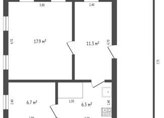 Общая площадь: 38 м2