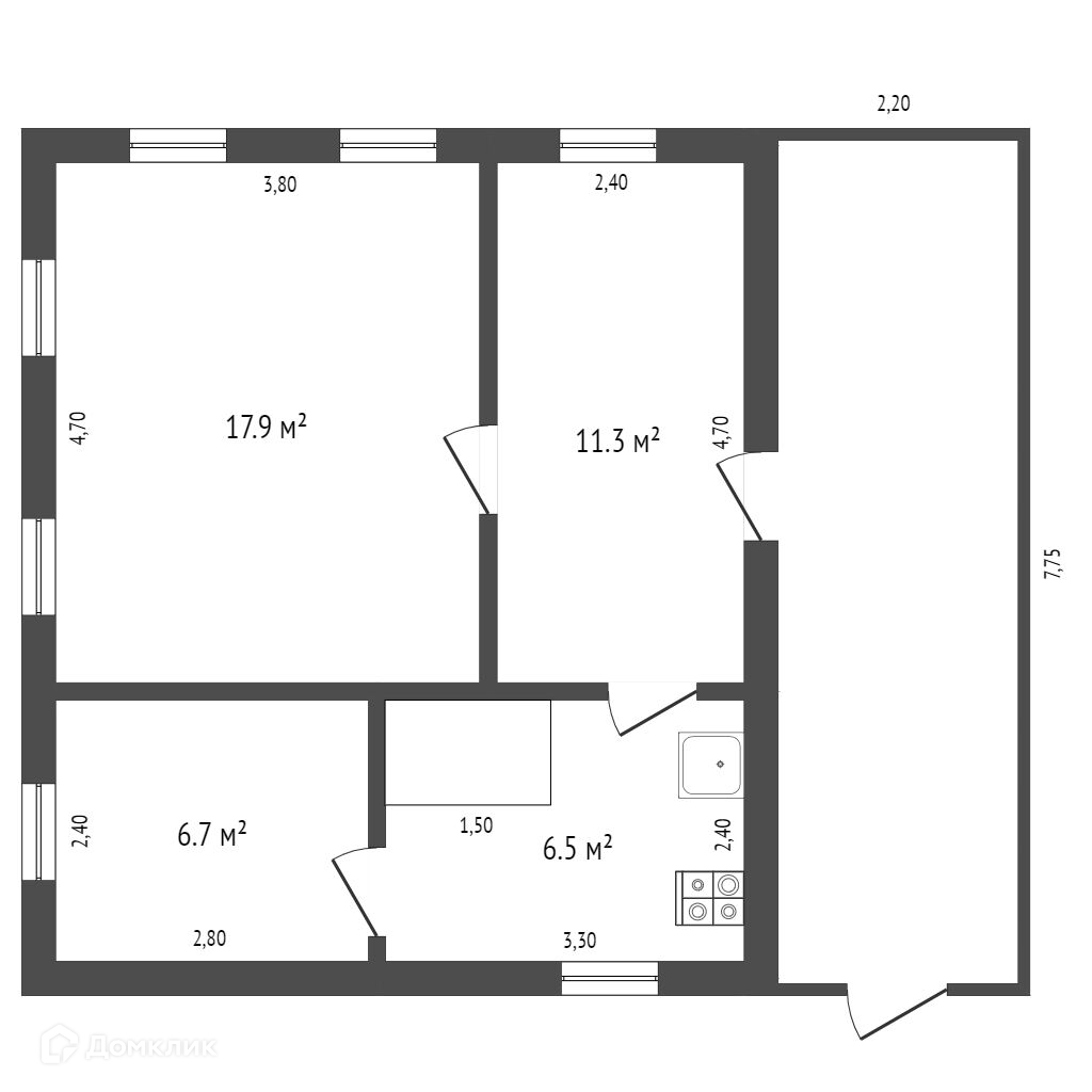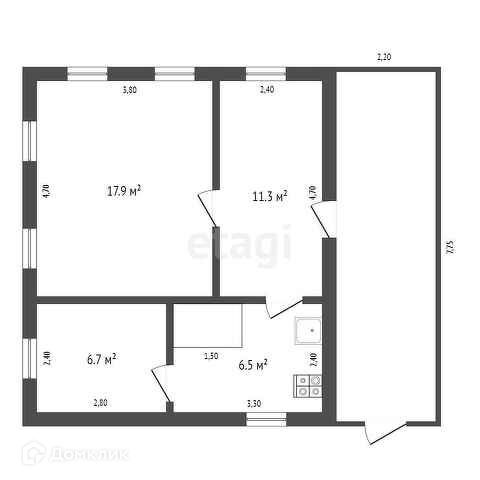 Общая площадь 42.4 м2