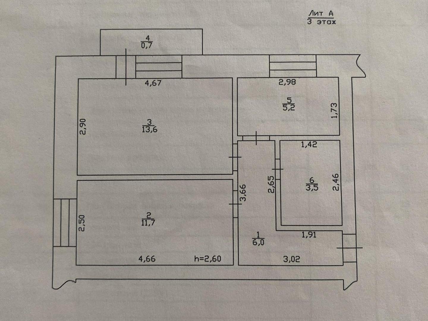 Высота потолков 2.6 м