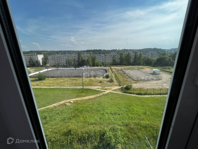 Окна выходят на спортивную площадку школы