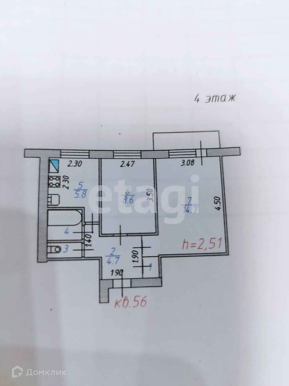 Общая площадь 37.7 м2