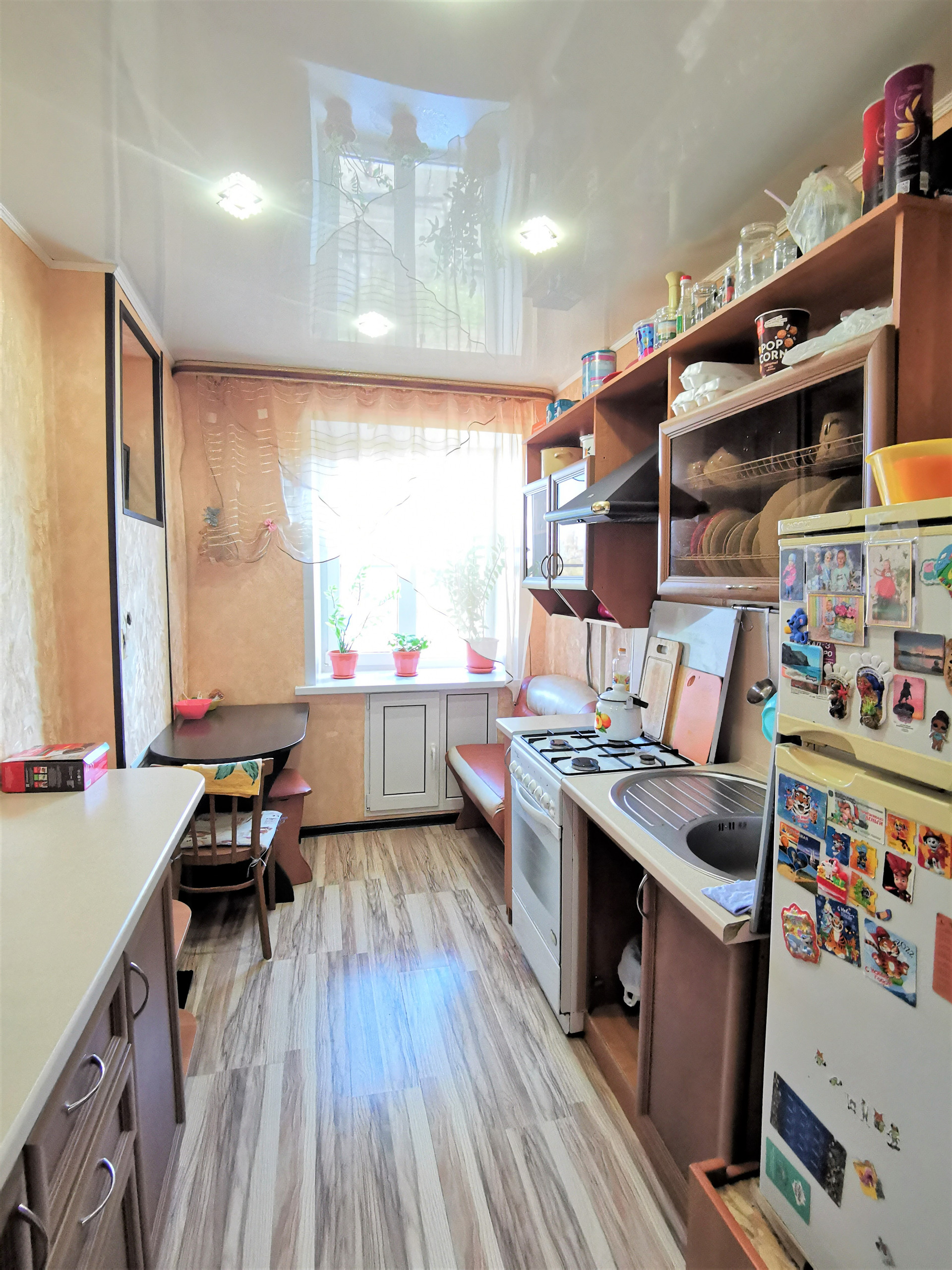 Квартира улучшенной планировки, комнаты изолированы, окна на две стороны. Большая кухня, с/у раздельный: ван. комната кафель, туалет-панели, сантехника в исправном состоянии, счетчики на воду. Косметический ремонт: окна пластик, входная метал.дверь, натяжной потолок на кухне, в комнатах подвесной потолок, на полу ламинат, лоджия застеклена. Остаётся кух.гарнитур.