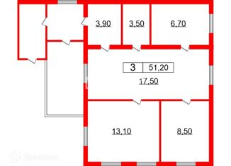 Общая площадь: 51.2 м2