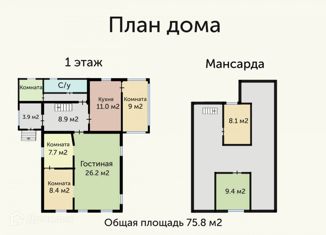 Общая площадь: 75.8 м2