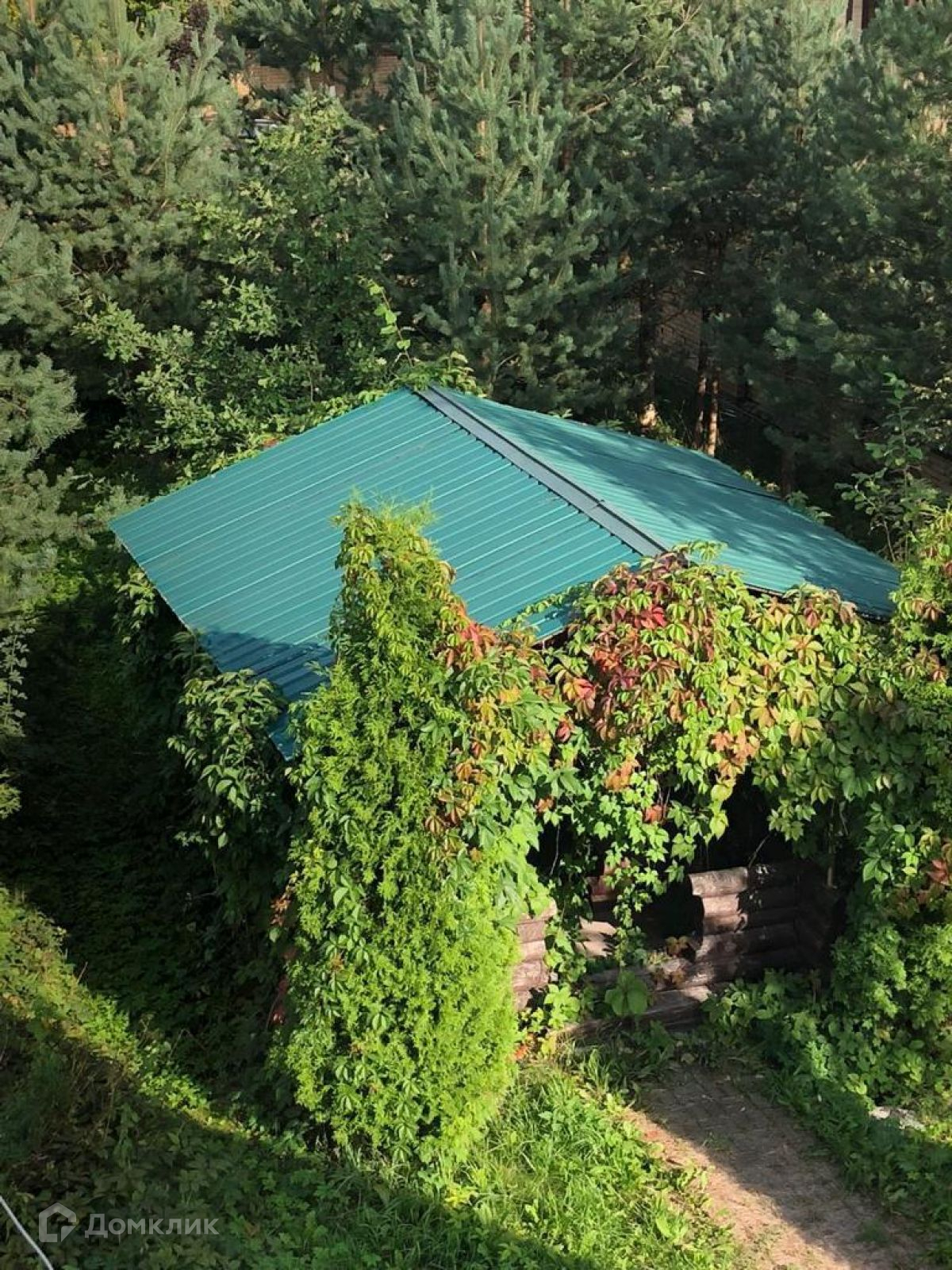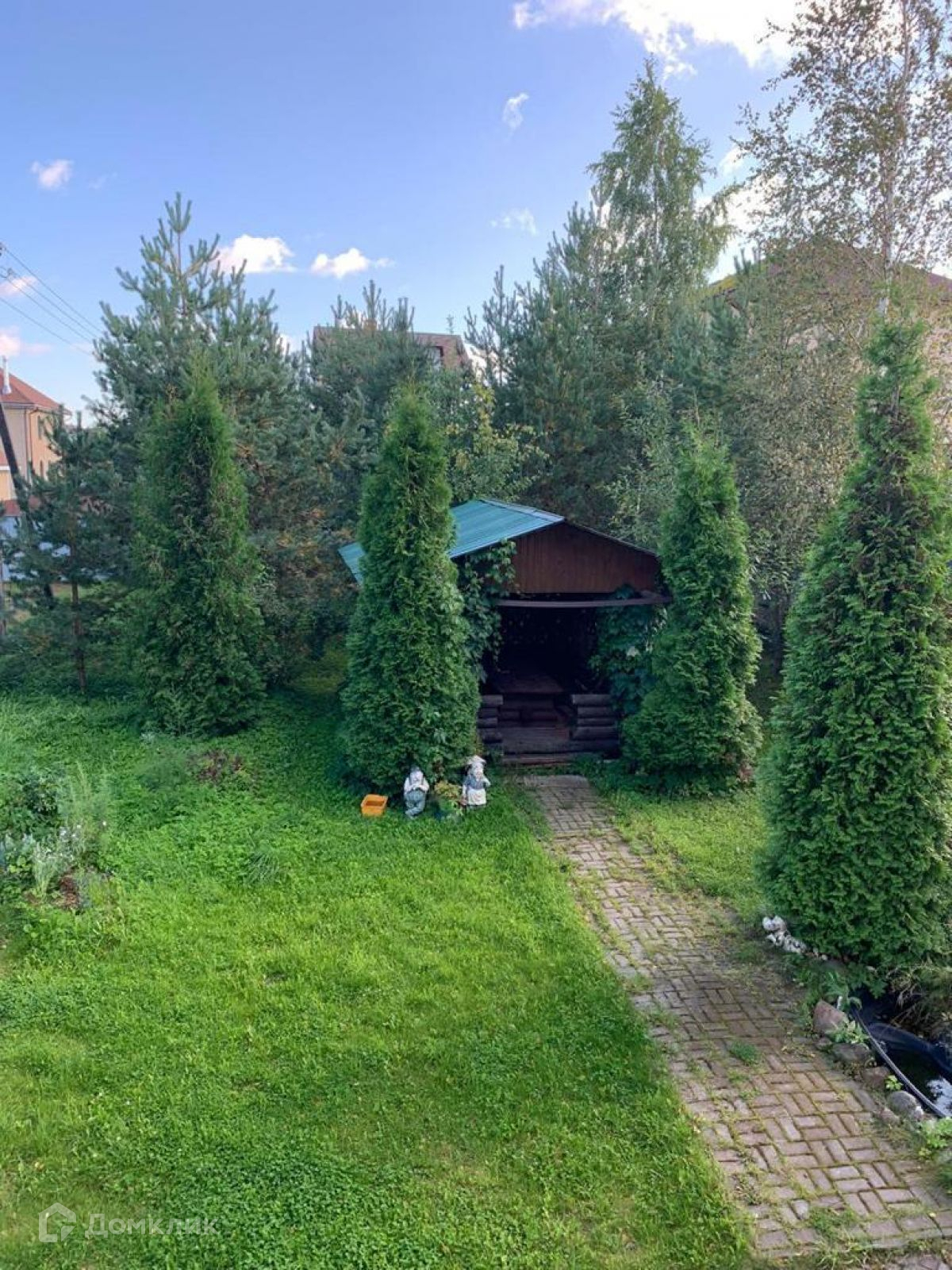На участке беседка.