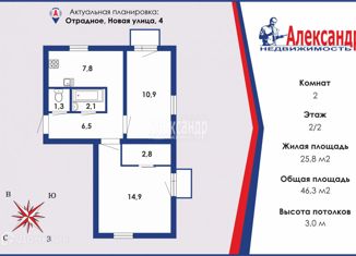 Продажа 2-ком. квартиры, 46.3 м2, Новая улица, 4