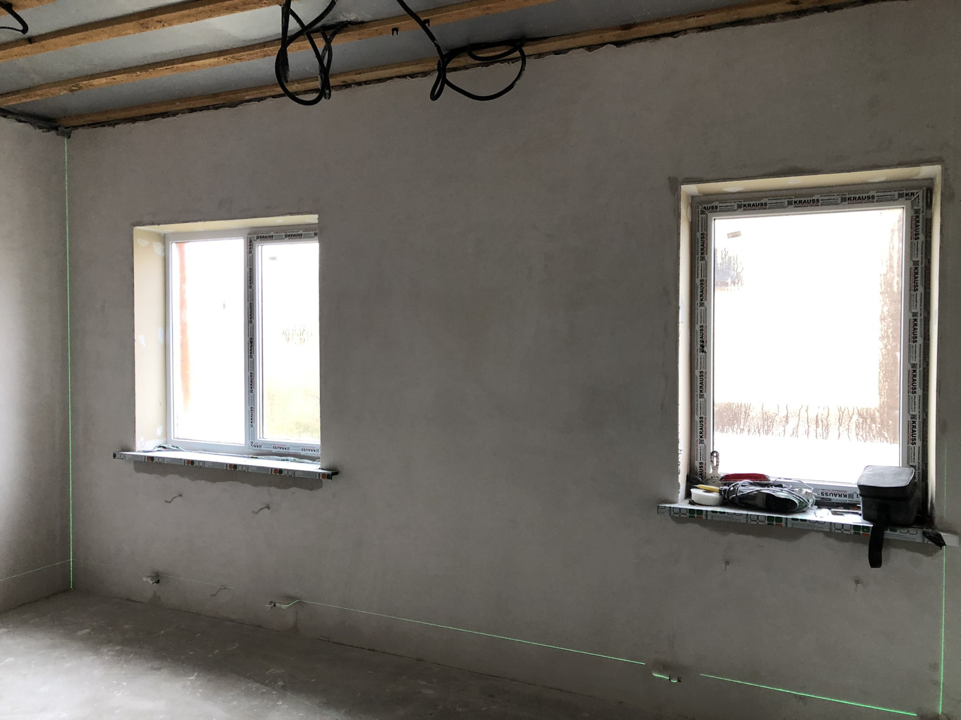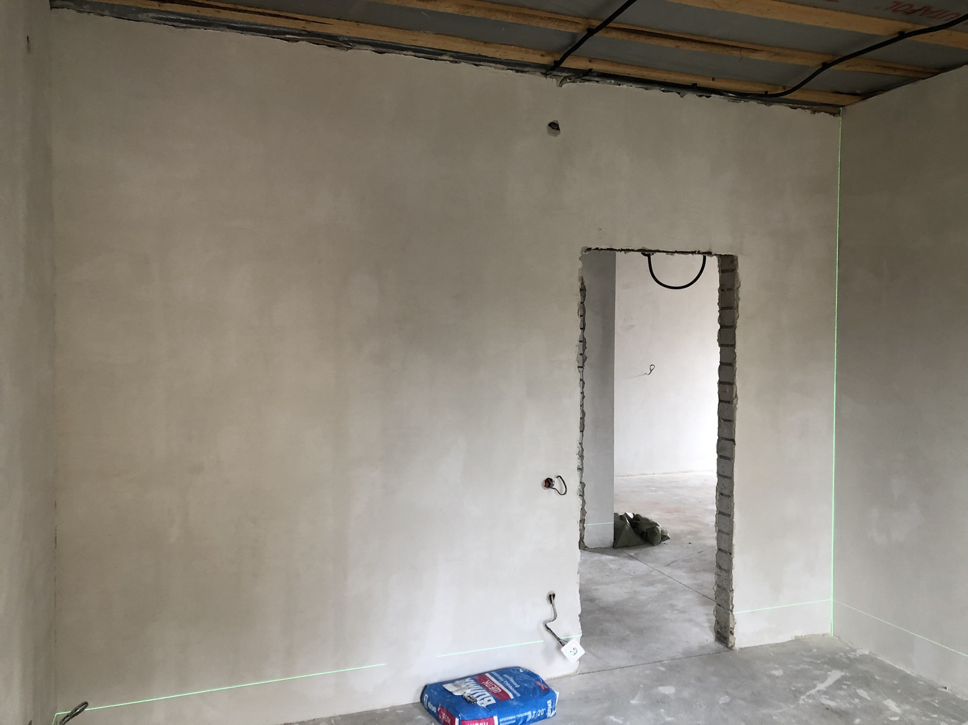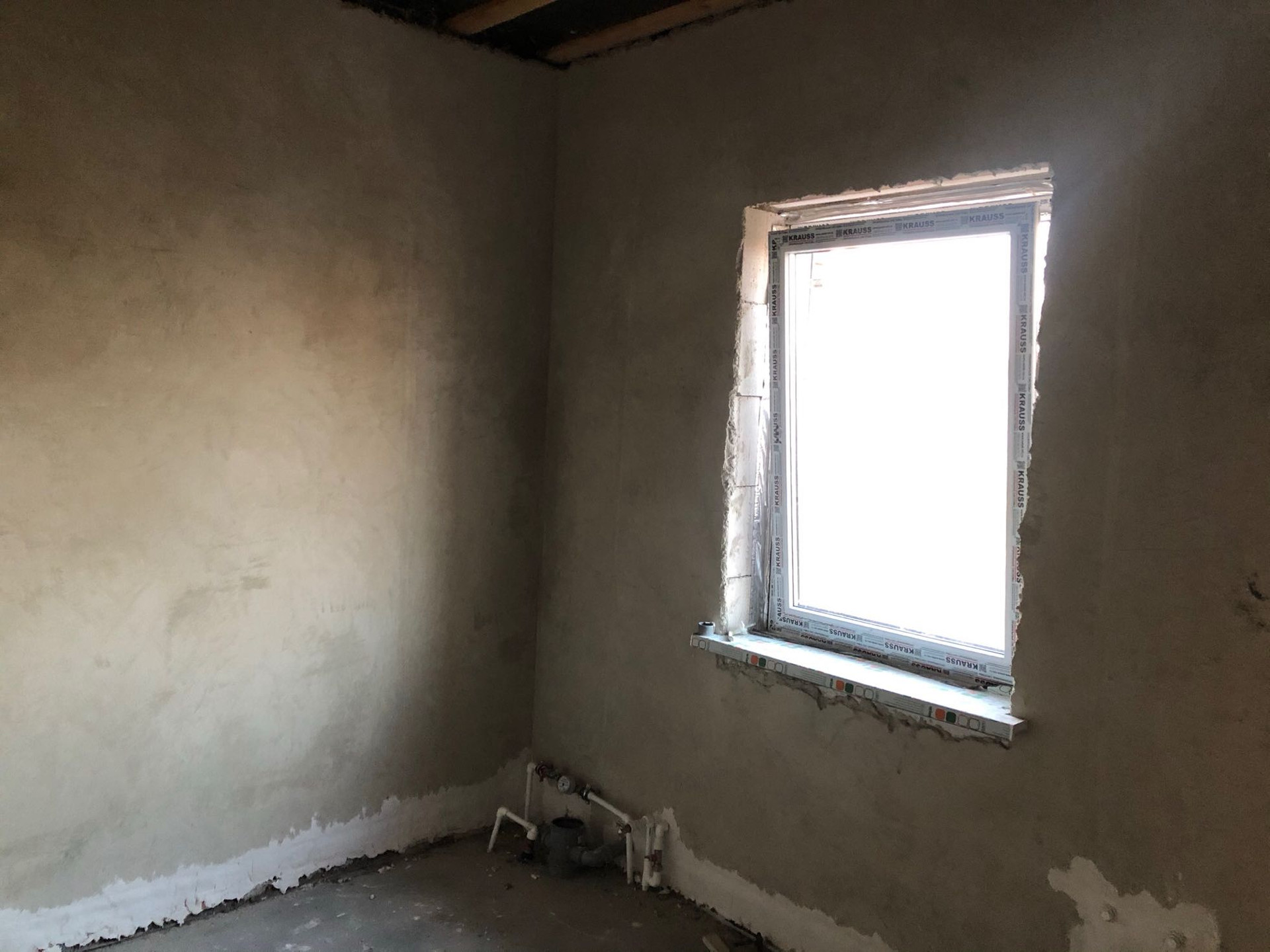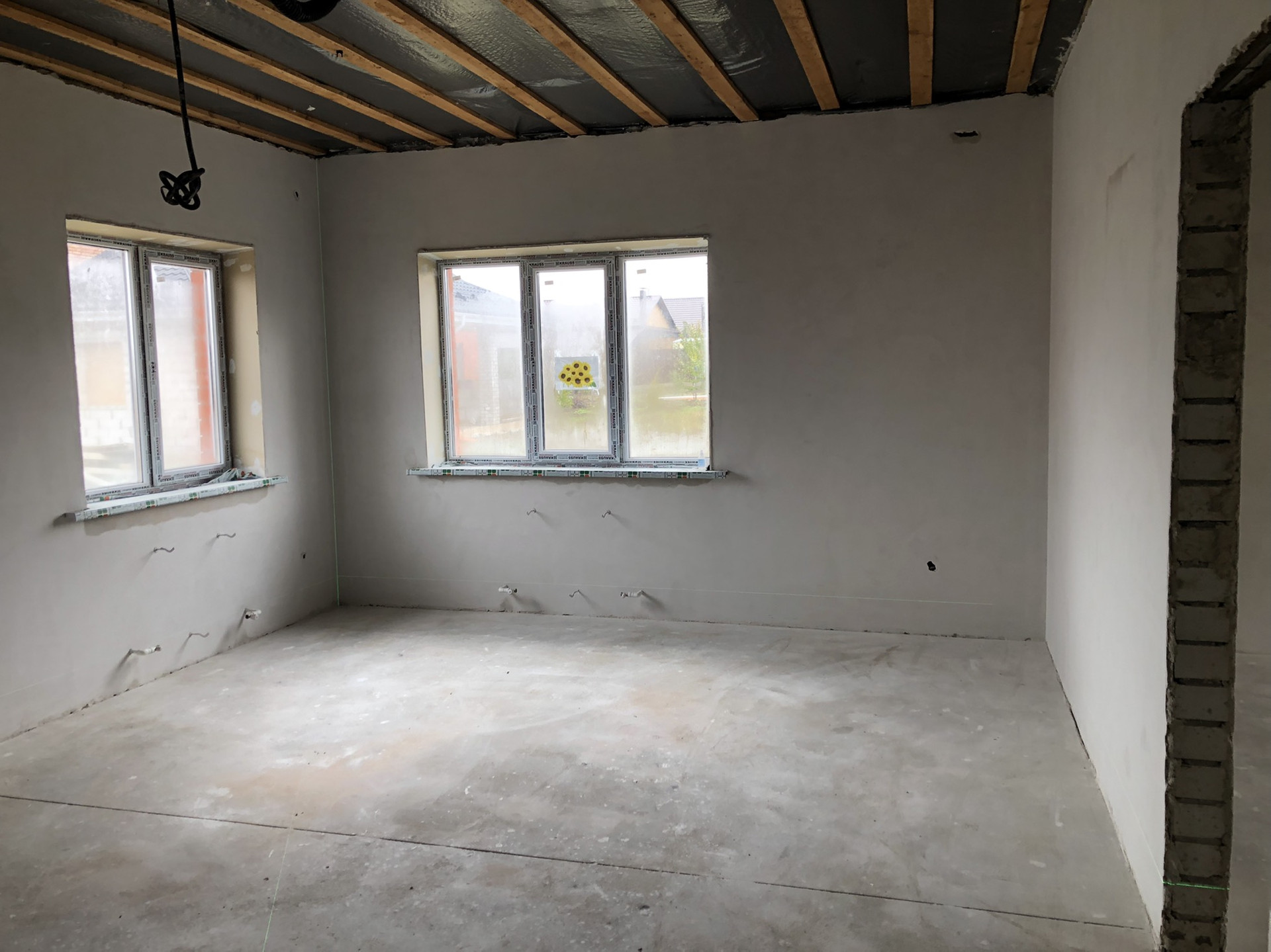 Отделка: наливной пол, во всем доме тёплые полы, стены отштукатурены, 2 слоя шпаклевки (идеально ровные и полностью готовы к проклейке обоев). Натяжные потолки.