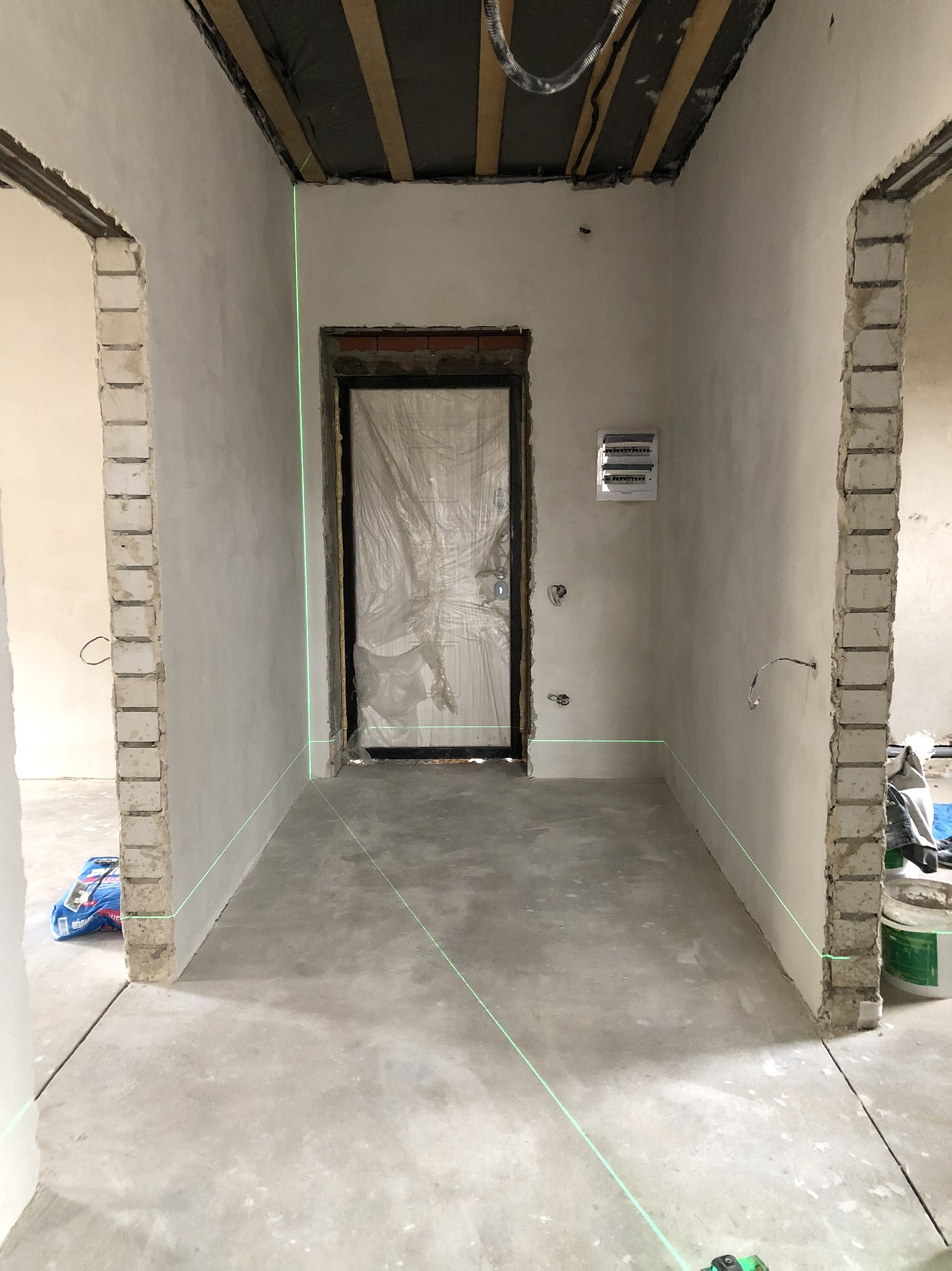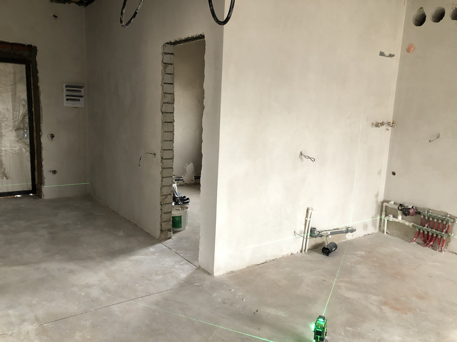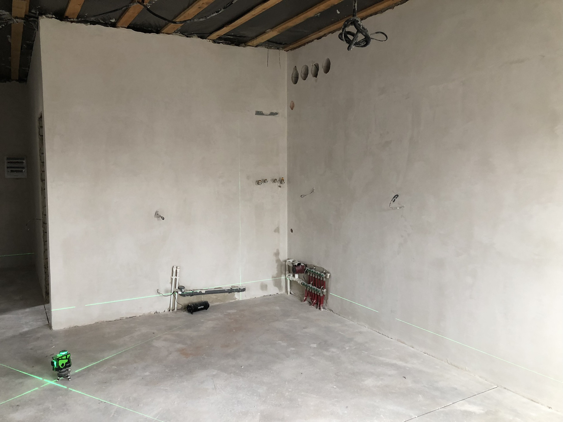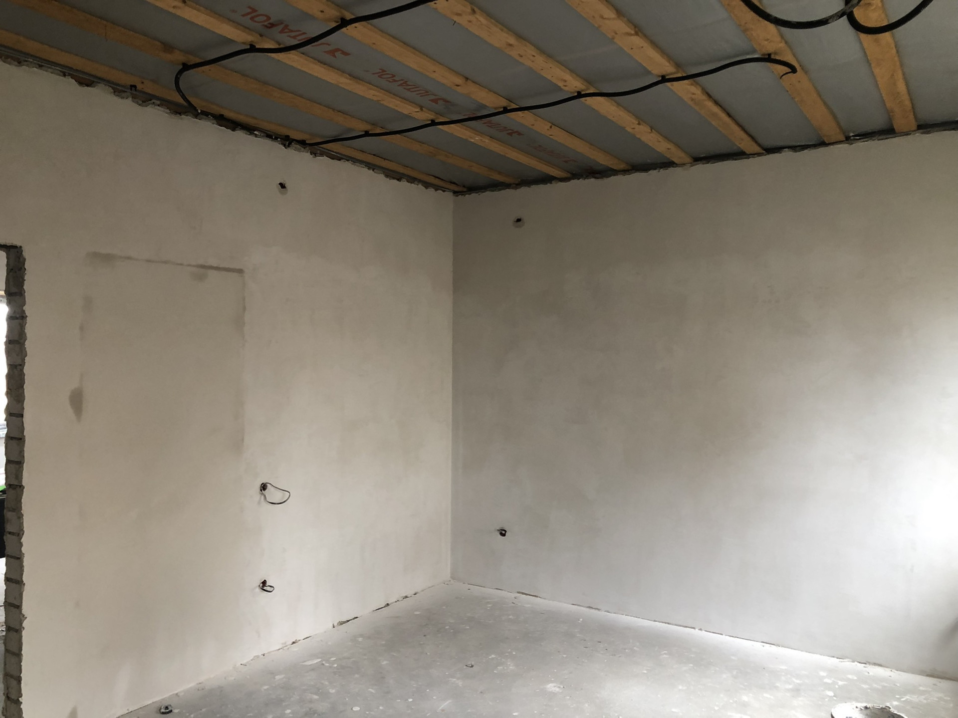 Отделка: наливной пол, во всем доме тёплые полы, стены отштукатурены, 2 слоя шпаклевки (идеально ровные и полностью готовы к проклейке обоев). Натяжные потолки.