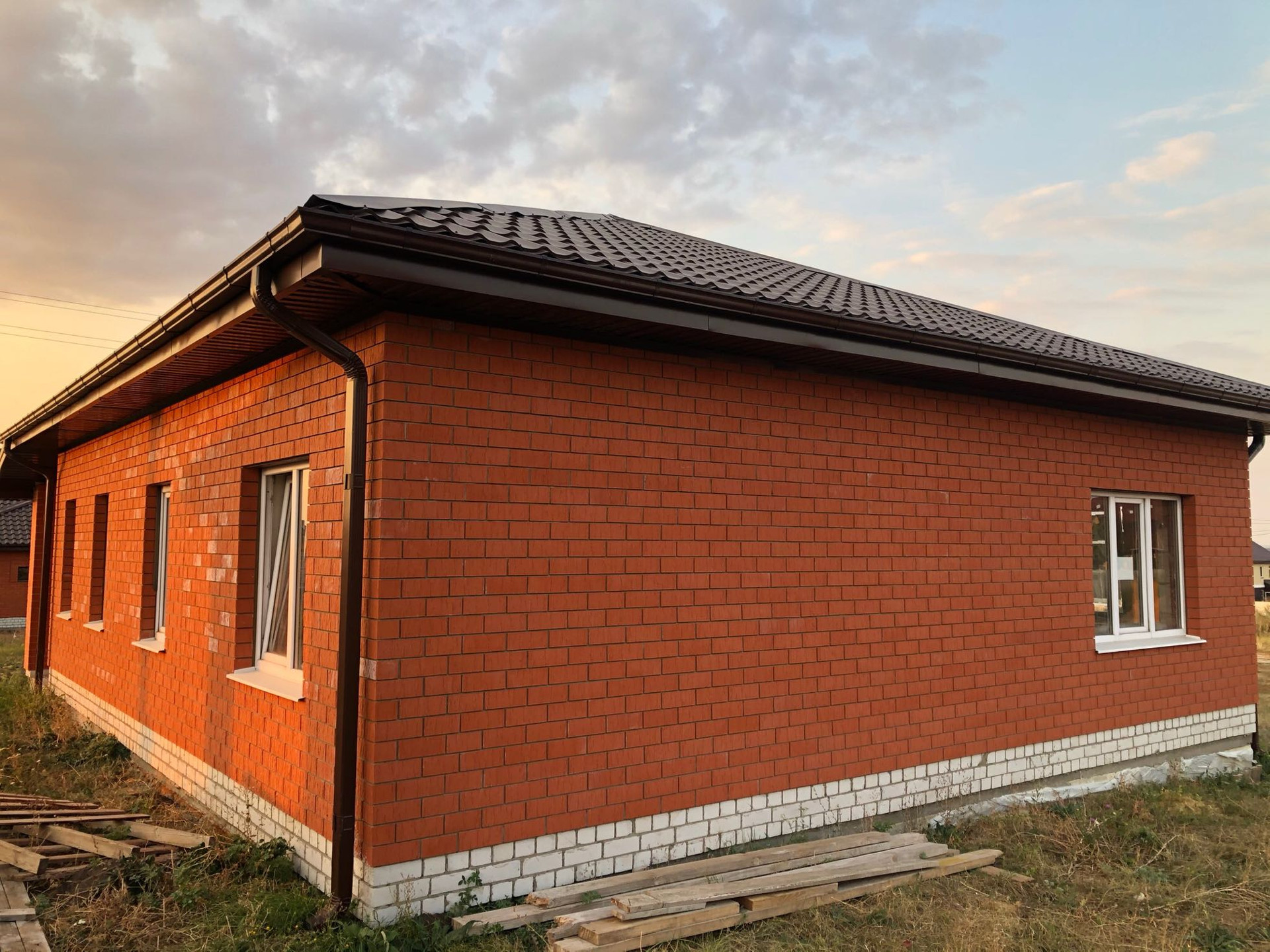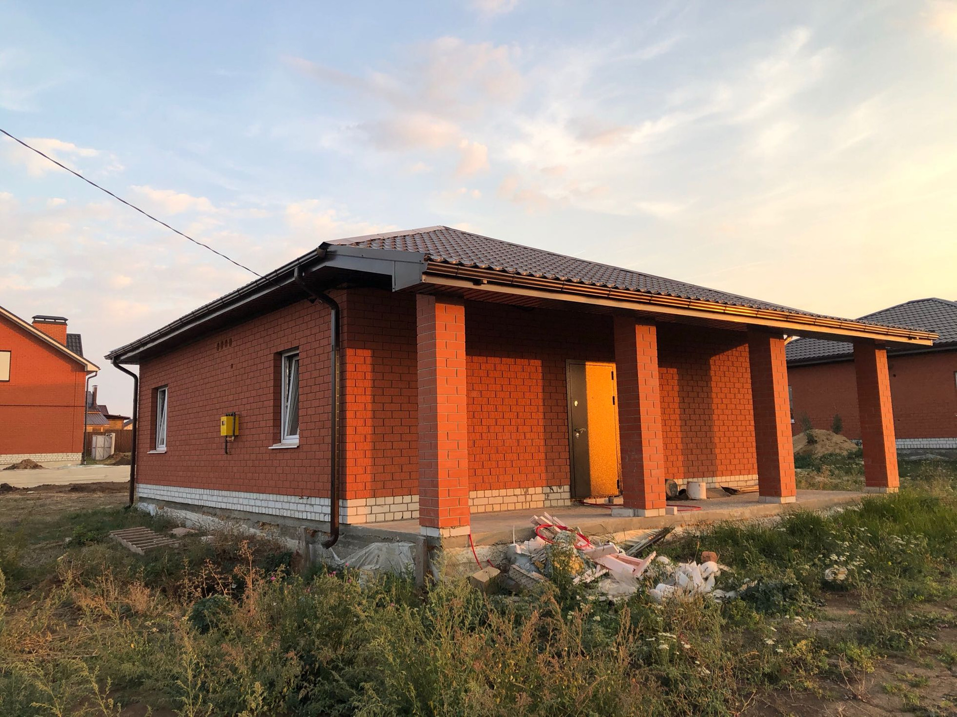 Стены: из газосиликата 300, утеплитель, облицовочный кирпич.