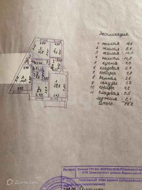 4-комнатная квартира, 77.2 м2, этаж 4 / 5, на продажу в городе Семилуки, Транспортная улица, 14