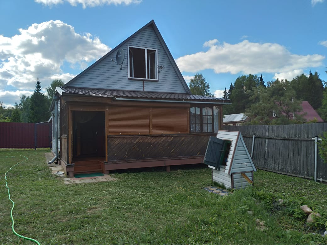 Ярославское направление, 90 км. от МКАД в окрестностях города Струнино в охраняемом и обжитом СНТ Копцево продается превосходная двухэтажная дача. Дом общей площадью 90 кв.м., построен из бруса размером 100*80, обшит сайдингом, крыша покрыта металлочерепицей. Изнутри дом обшит вагонкой. Душ, туалет в доме, вода из скважины заведена в дом и разведена по точкам, установлен водонагреватель, электрическое отопление по первому этажу. Второй этаж не отапливаемый. Для приготовления пищи установлена плита комбинированного типа (работает как от привозного баллонного газа, так и от электричества. На первом этаже в доме расположены: просторная кухня, раздельный санузел, две комнаты. На втором этаже свободное помещение и комната. Дом в отличном состоянии, пригодном для проживания в осенне-весенний период, и не требующий дополнительных вложений. Дополнительным бонусом для покупателя этого дома будет, что он продается со всей мебелью и техникой, что значительно ускорит Ваш переезд в этот отличный дом. Земельный участок 8 соток благоустроен, огорожен забором по периметру, растут плодово-ягодные насаждения. Дом расположен всего в 20 метрах от леса. Чистый воздух, возможность сбора грибов и ягод. Отличное тихое место для Вашего отдыха. Территория СНТ Копцево охраняется, на въезде установлен шлагбаум. Многие проживают постоянно. В СНТ имеется магазин, протекает речка. Красивые места. В пешей доступности город. Струнино город с развитой инфраструктурой. Все, что необходимо для современной жизни, в городе имеется. Прямое ЖД сообщение с Москвой, 2 часа на электричке. От СНТ до ЖД вокзала 2 км. Показ возможен в выходные дни по предварительной договоренности. Звоните! Все расскажем и покажем!