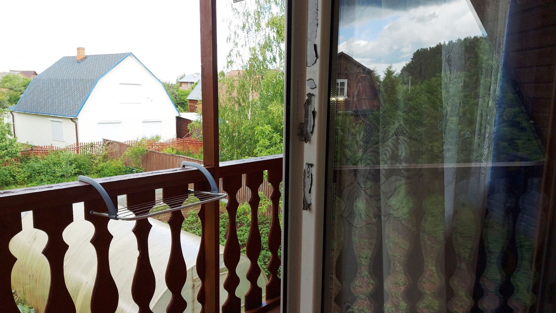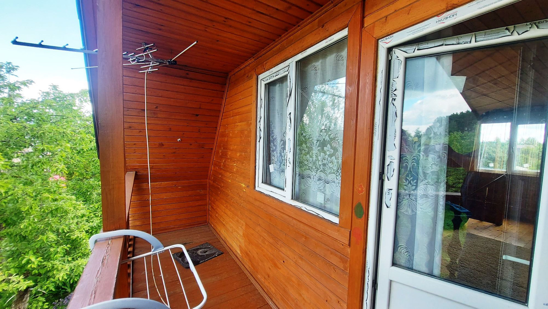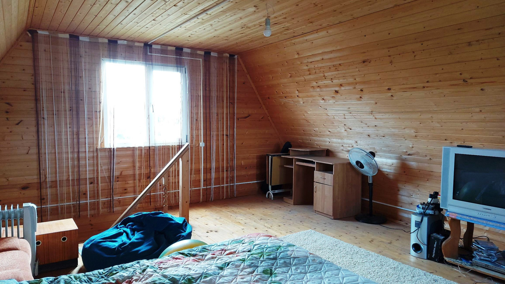 Первый этаж-комната, совмещенный с/у. На второй этаж ведёт удобная лестница. Там, так же одна комната с выходом на балкон.