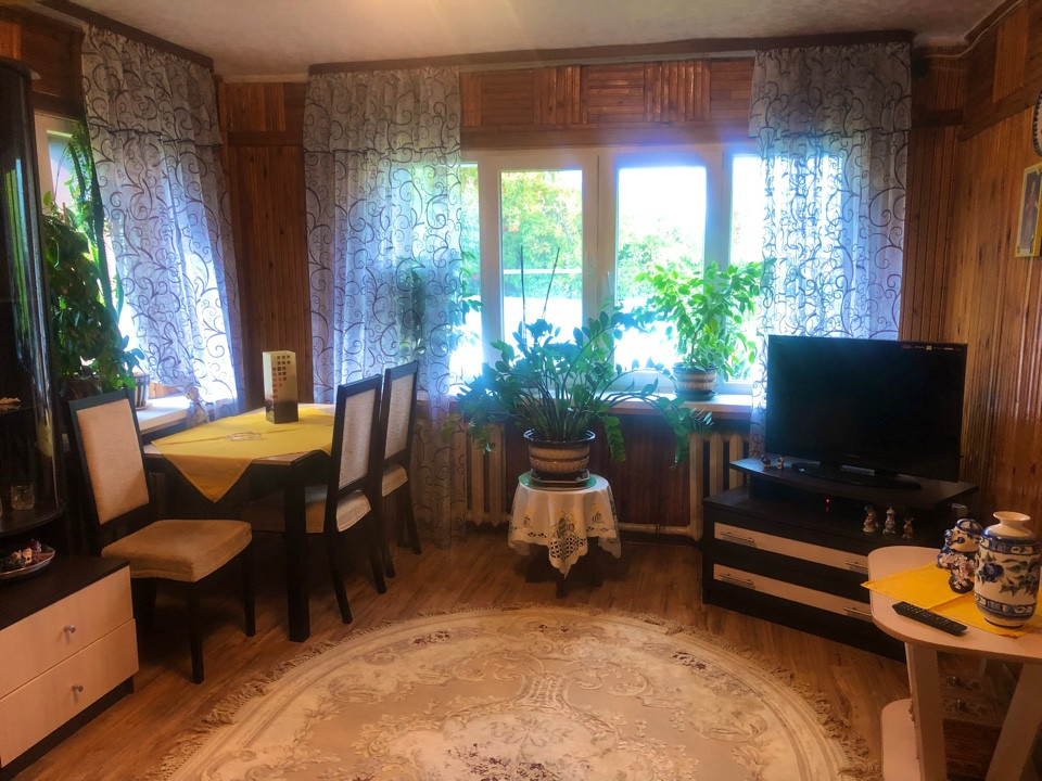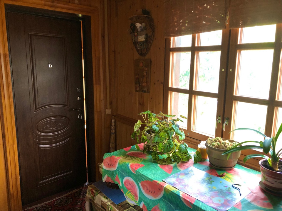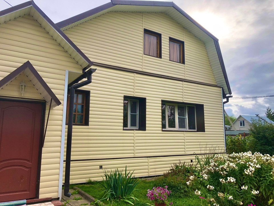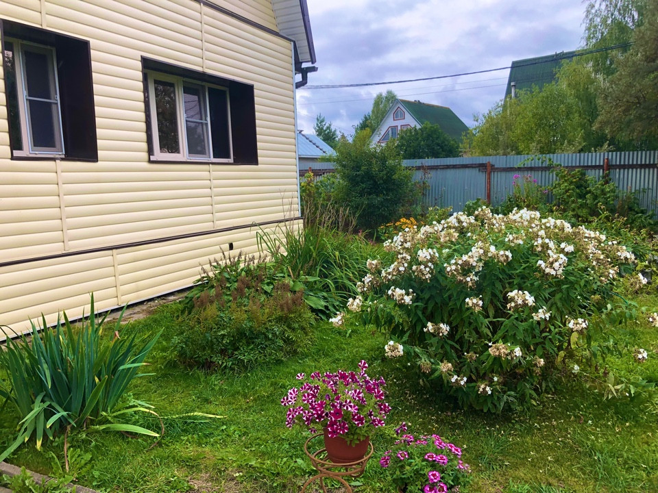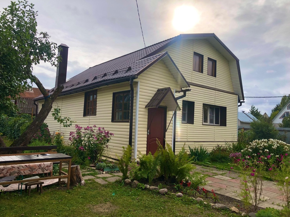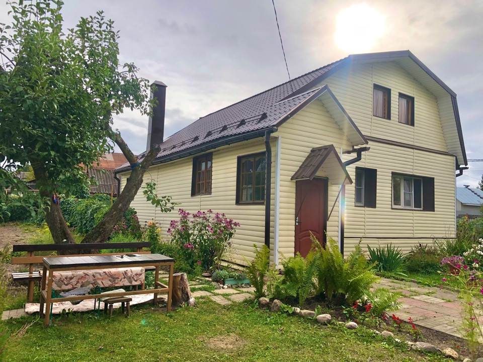 Дом бревенчатый общей площадью 140 кв.м.,со всеми удобствами.Полностью готовый для постоянного проживани снаружи обшит сайдингом, кровля - металлочерепица, полностью благоустроен.Внутренняя отделка дома - дерево. На первом этаже расположены: кухня 12 кв.м., гостиная, детская 12 кв.м., спальня 15 кв.м. и гардеробная комната 3.5 кв.м. На втором этаже большая гостиная, которая временно не используется.Земельный участок 8,5 соток ровный, правильной формы, хорошо разработан, есть зона отдыха со столиком и скамейкой. Имеются как декоративные так и плодовые насаждения, много цветов.Из плодовых культур: яблоня, слива, груша, малина, клубника.