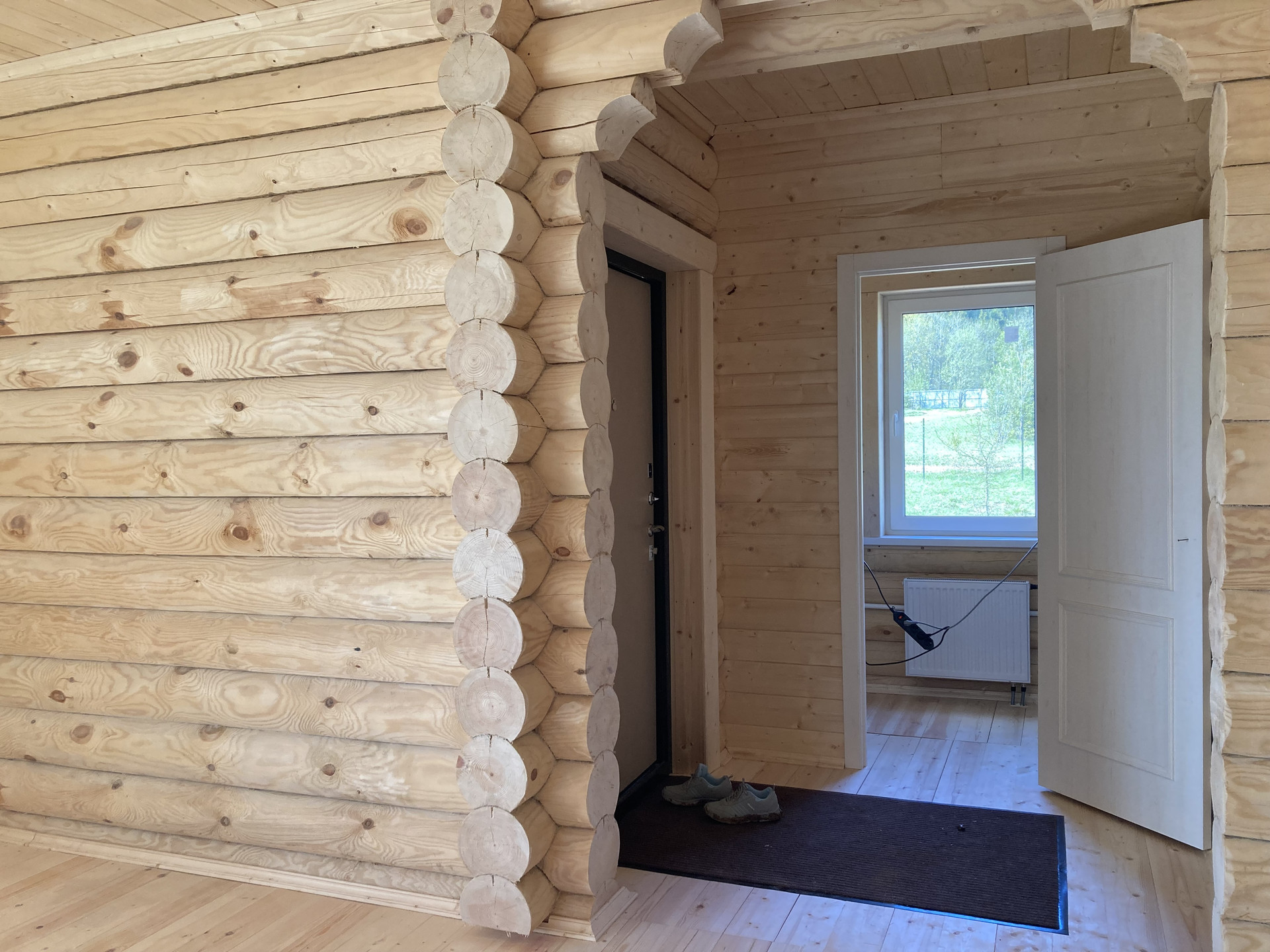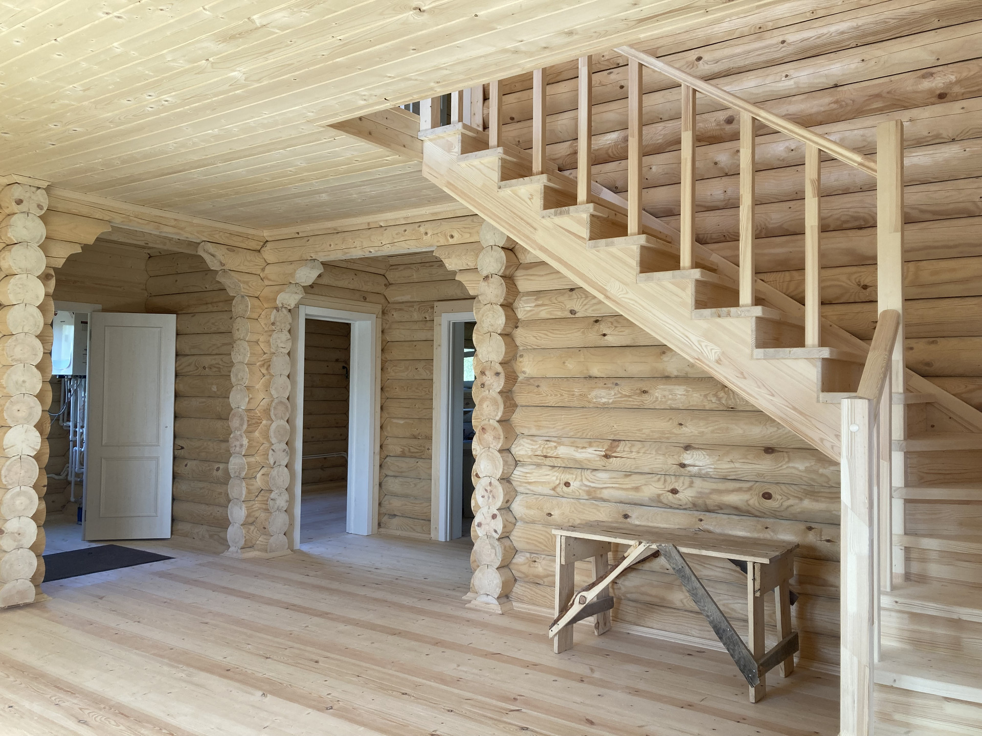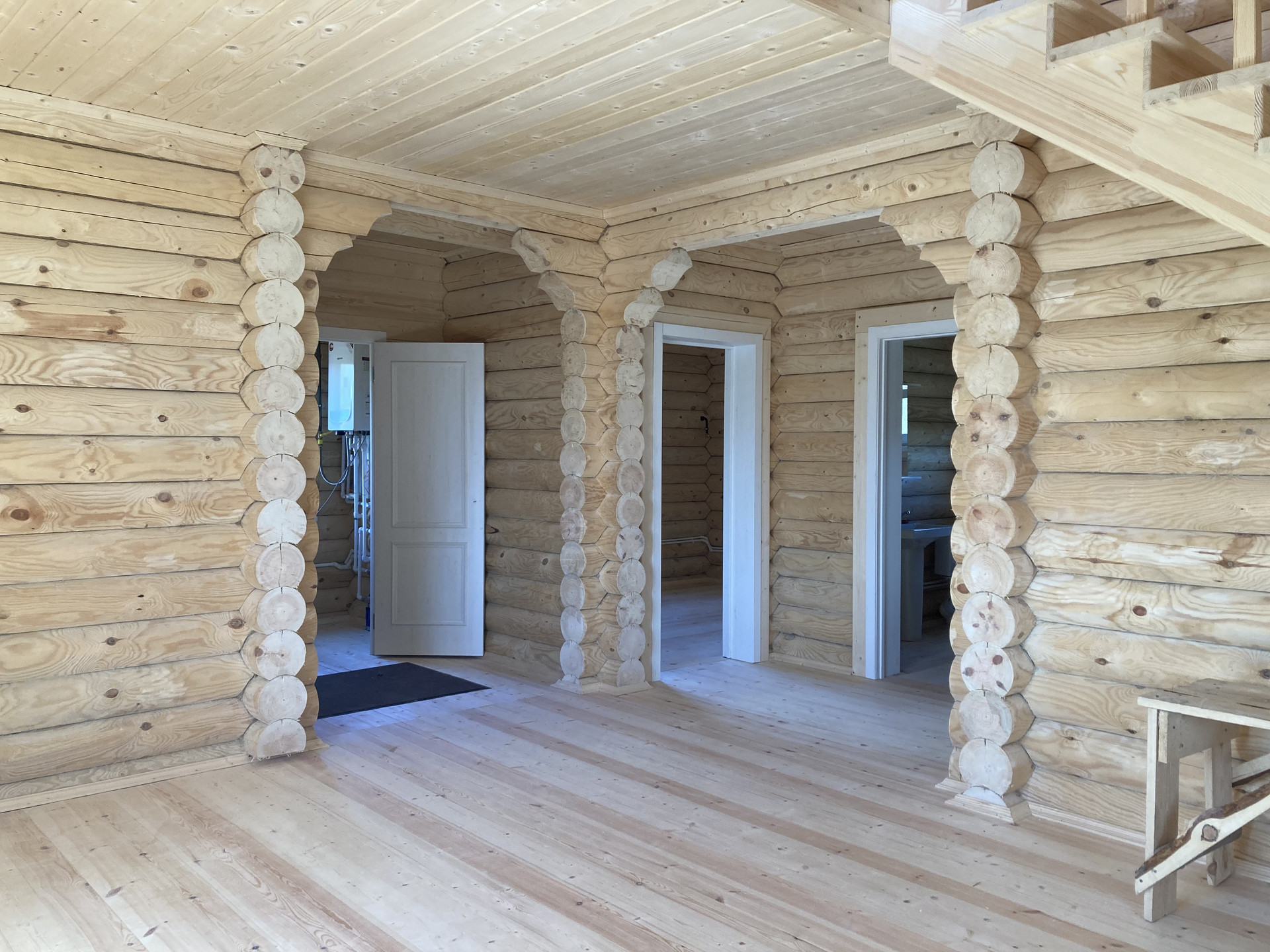Продается дом с газом 160 кв.м. на участке 12 соток в Струнино. Дом из оцилиндрованного бревна диаметром 220 мм, снаружи покрашен, кровля металлочерепица, окна ПВХ, металлическая входная дверь, потолок отделан вагонкой, пол - деревянная доска. В доме: крыльцо, прихожая, бойлерная, 2 санузла, кухня-гостиная, большой холл, 4 спальни. Коммуникации: электричество заведено (380 в), центральный газ, газовое отопление, установлен двухконтурный газовый котел на отопление и горячую воду, септик, вода из скважины. Участок ровный, сухой, огорожен забором, граничит с лесом. Красивое место. Подъезд круглогодичный, от асфальта 500 метров по гравийной дороге. Ярославское направление 90 км от МКАД.