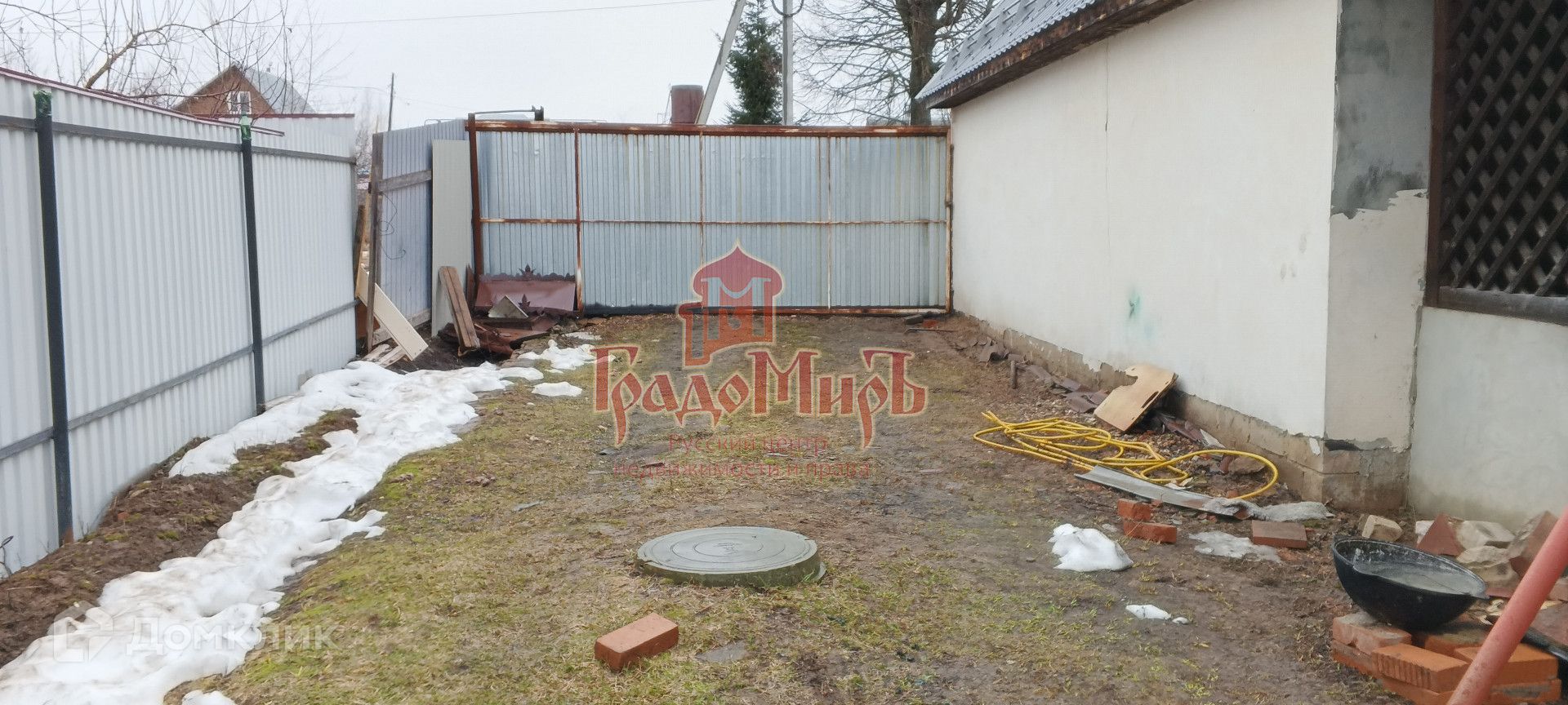 Участок огорожен забором из профлиста, сделаны откатные ворота, место для парковки автомобиля.