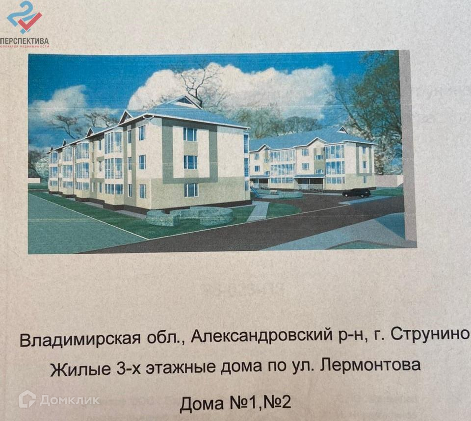 2-комнатная квартира, 54.6 м2, этаж 2 / 3, на продажу в городе Струнино, улица Лермонтова, 13