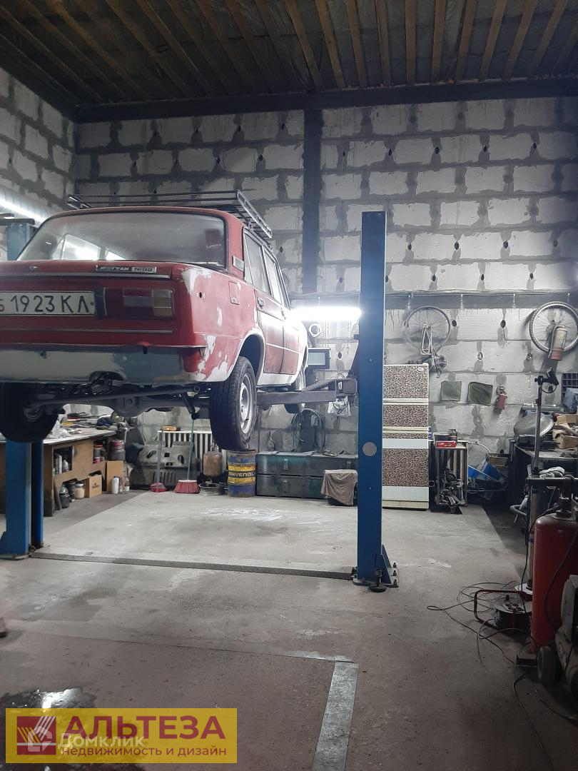 На участке навес под 2 автомобиля, 2 «бокса» площадью-64 м. кв., на 3 автомобиля с подъемником, можно использовать как автосервис. Рядом школа №5, детский сад, магазин, автобусная остановка.