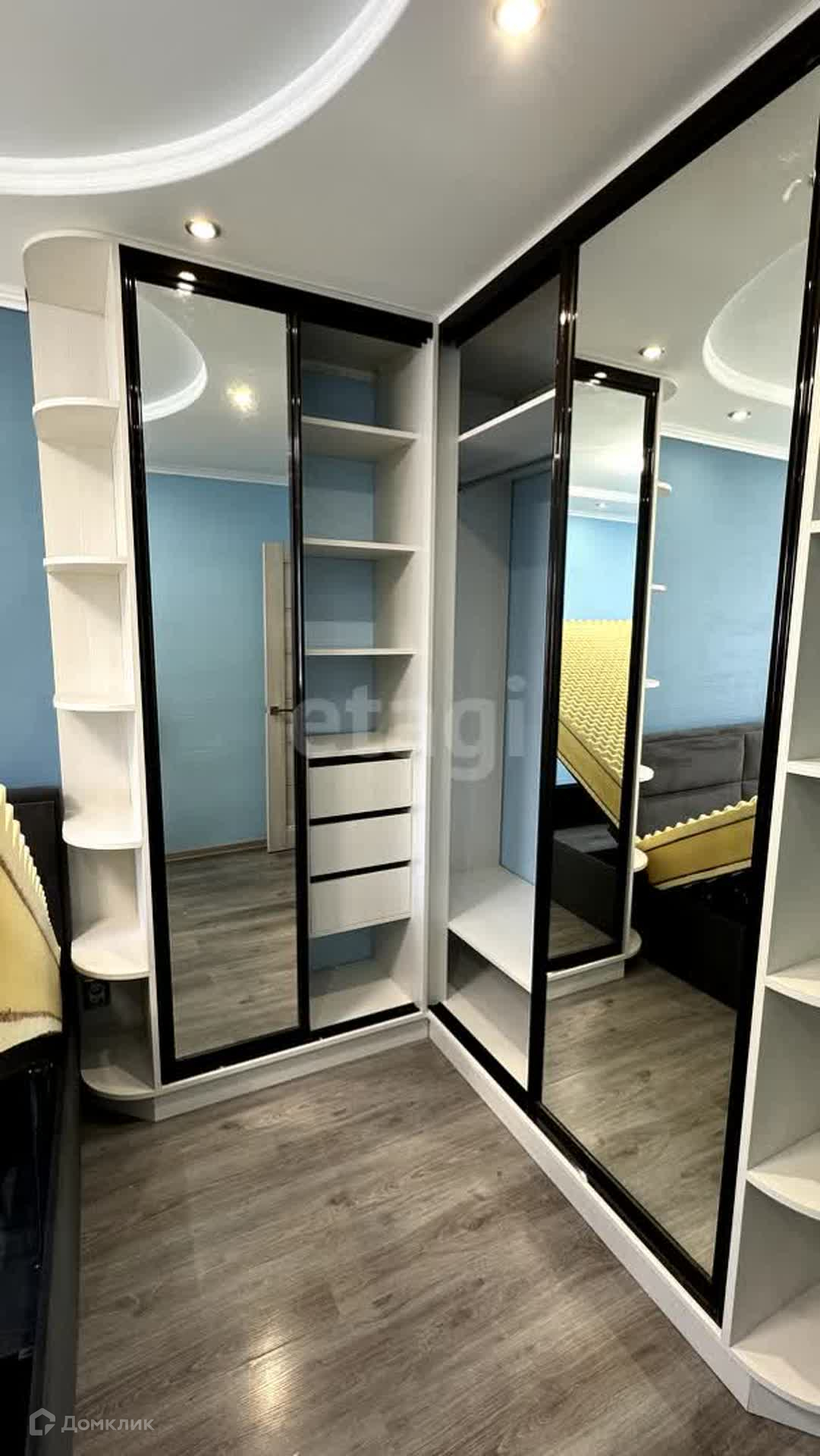 Уютная спальня, вместительный встроенный шкаф для одежды.