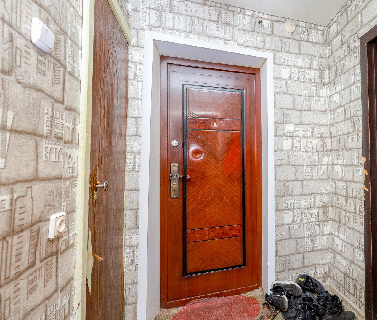 ✍ Установлены евро окна, входная сейф дверь, стены оклеены обоями, напольное покрытие линолеум