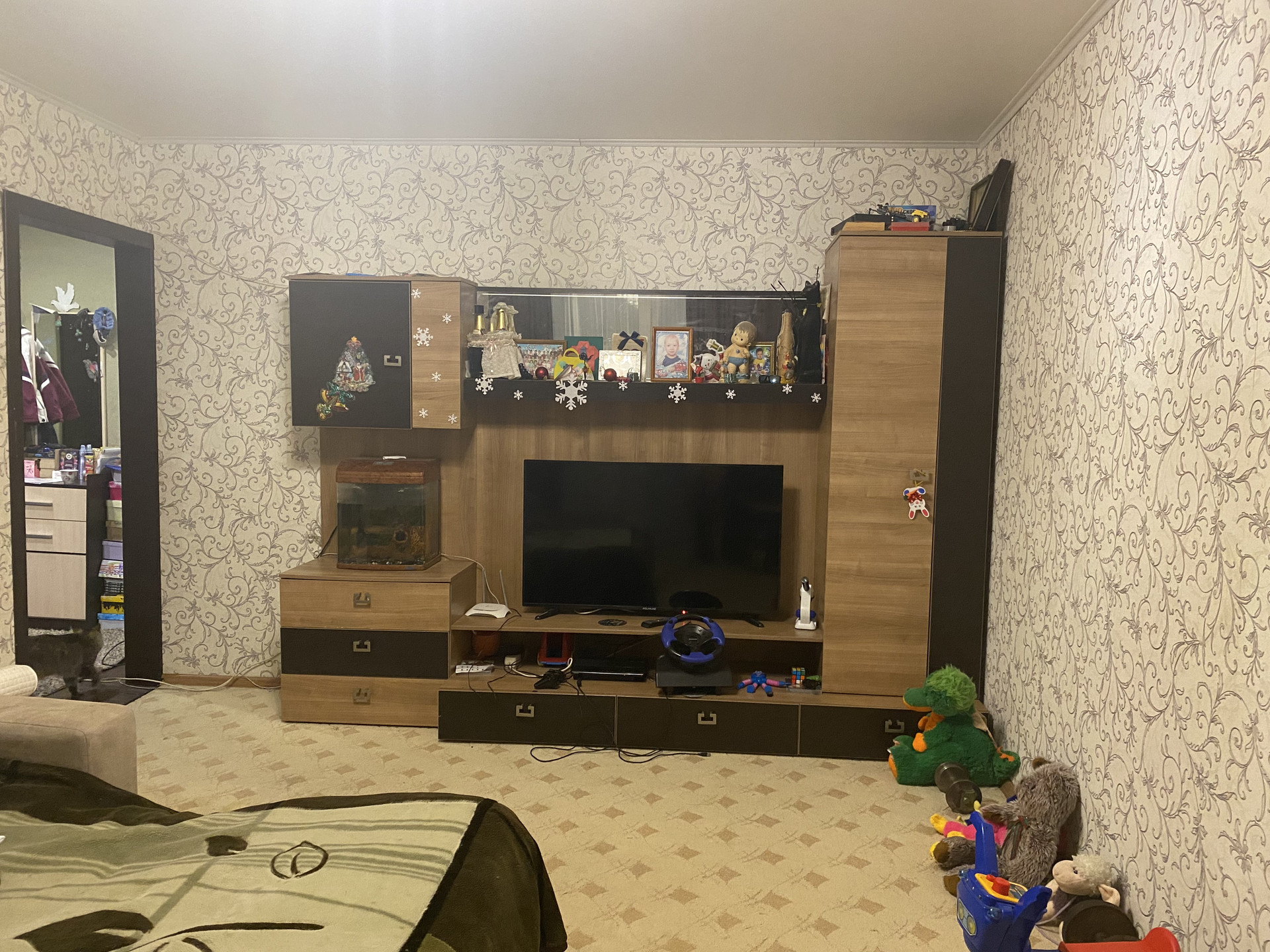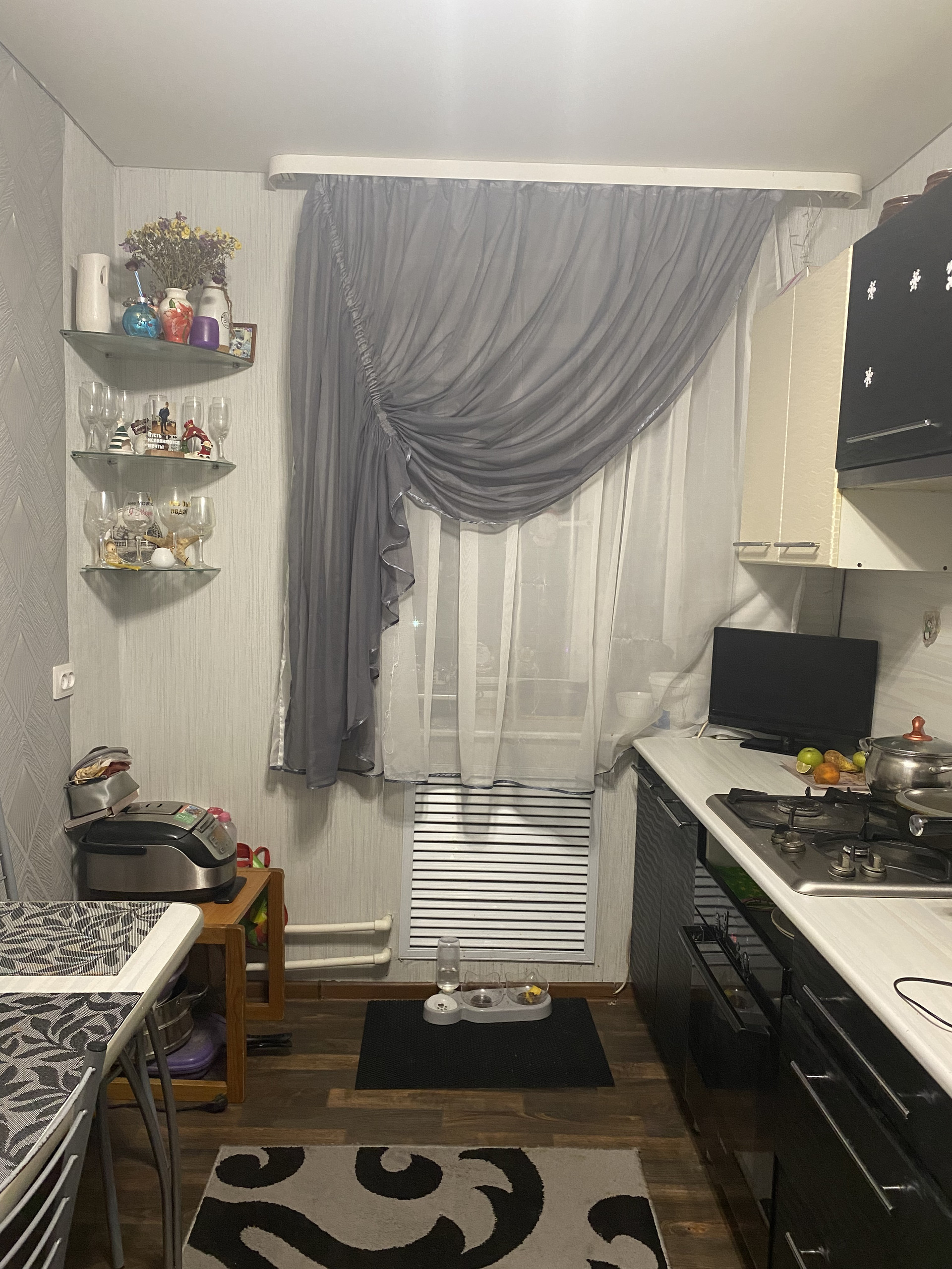 Евроокна, застекленная лоджия, натяжные потолки, в зале ковролин, встроенный кухонный гарнитур, варочная поверхность, новая сантехника. Счетчики ГВС/ХВС.