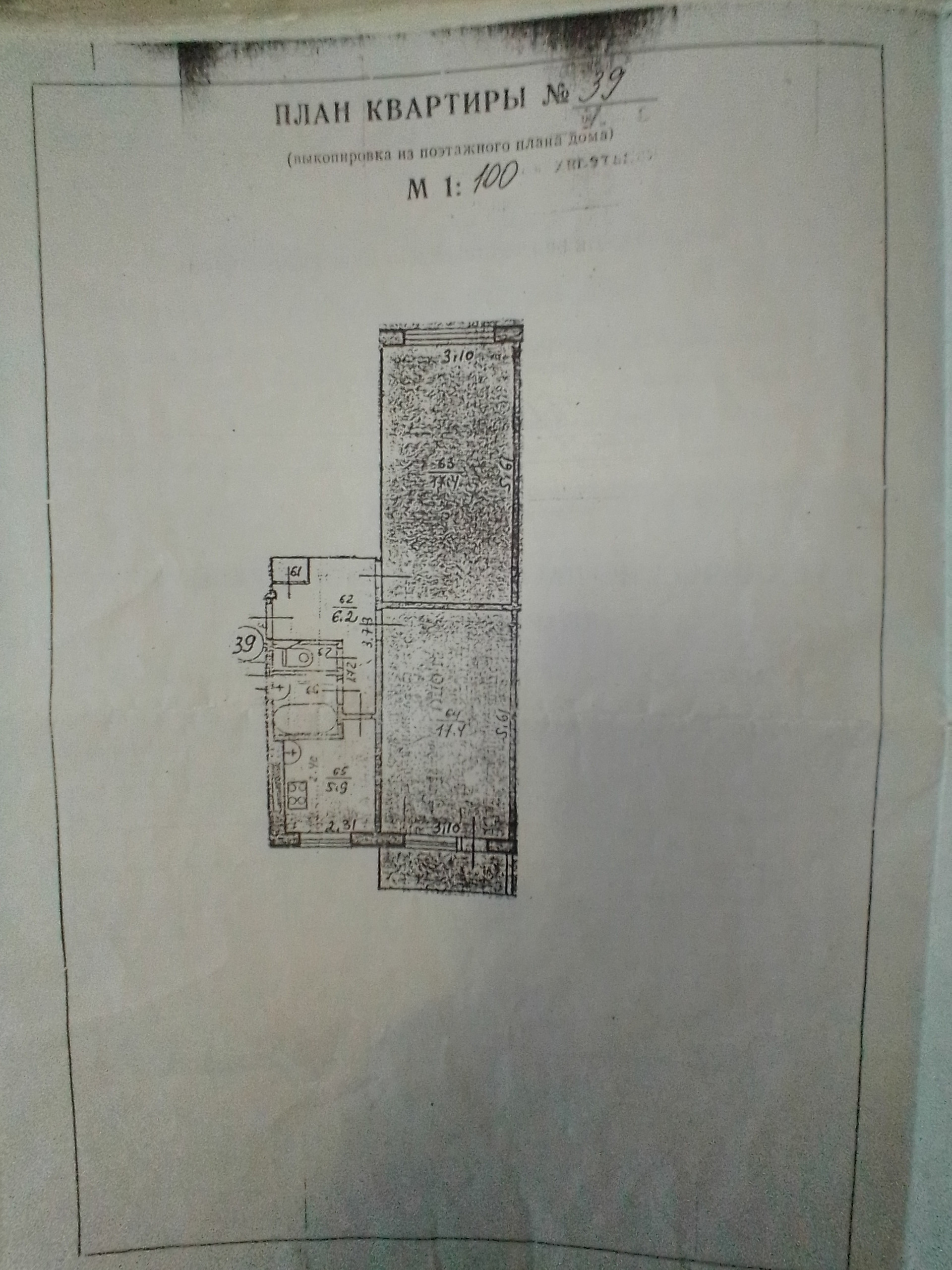 Жилая площадь 34.8 м2