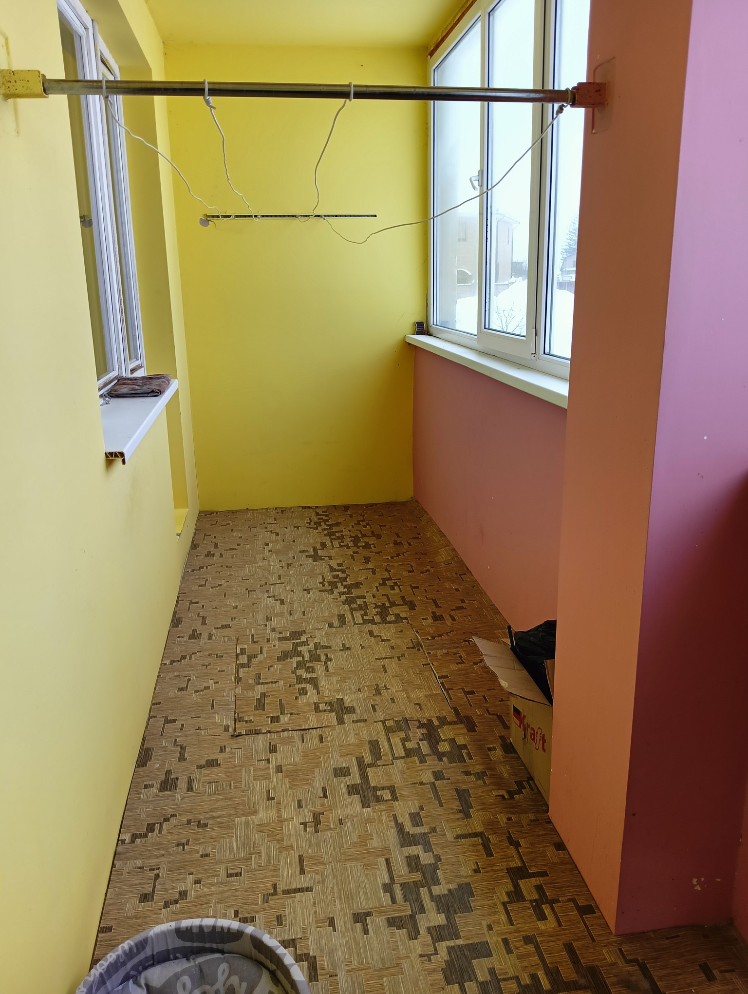Есть большая лоджия (длина 6 м), застеклена.