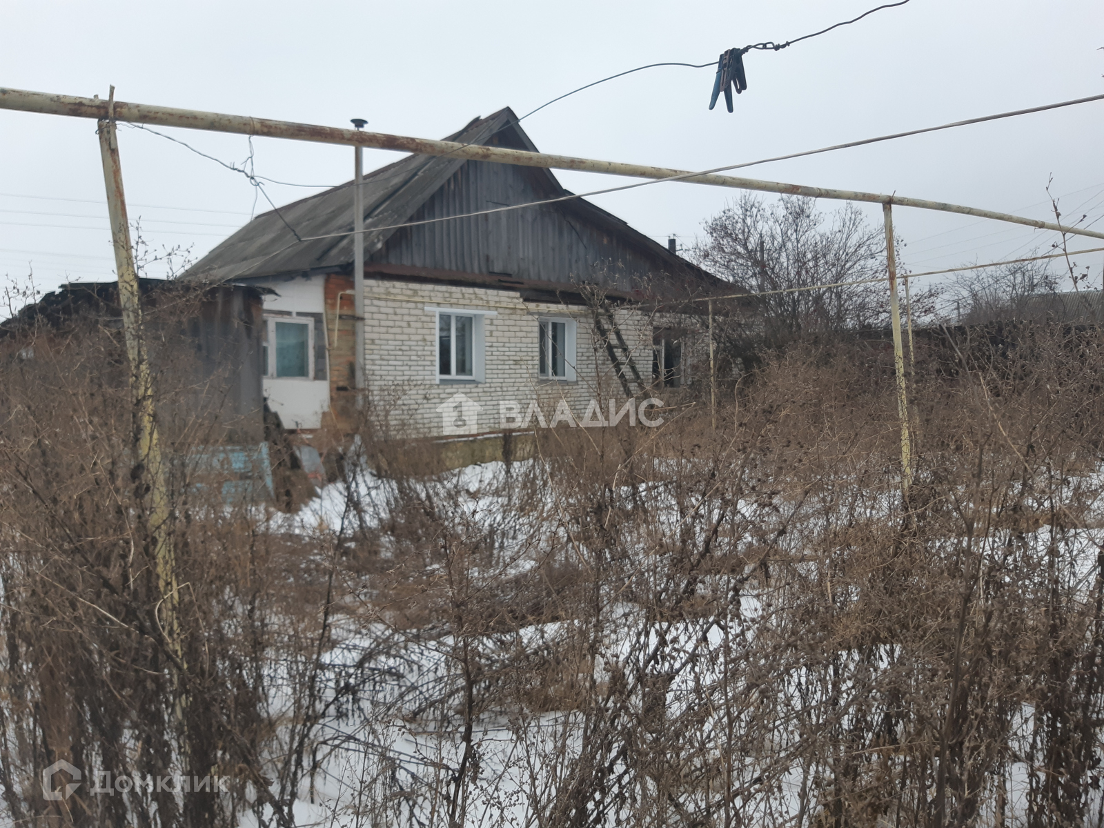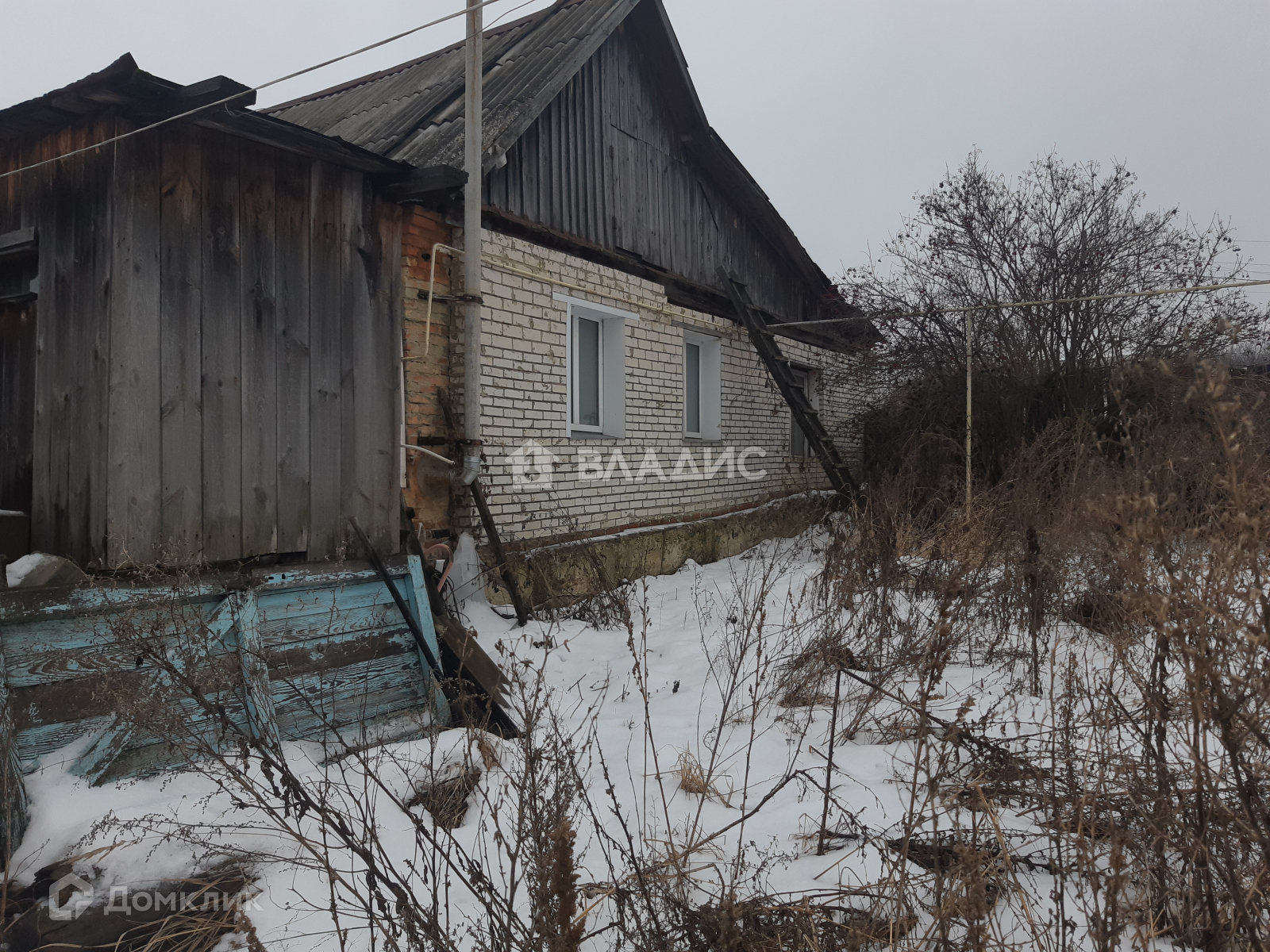 Дом 1979 года постройки. Материал стен - бревно, обложенный кирпичом.