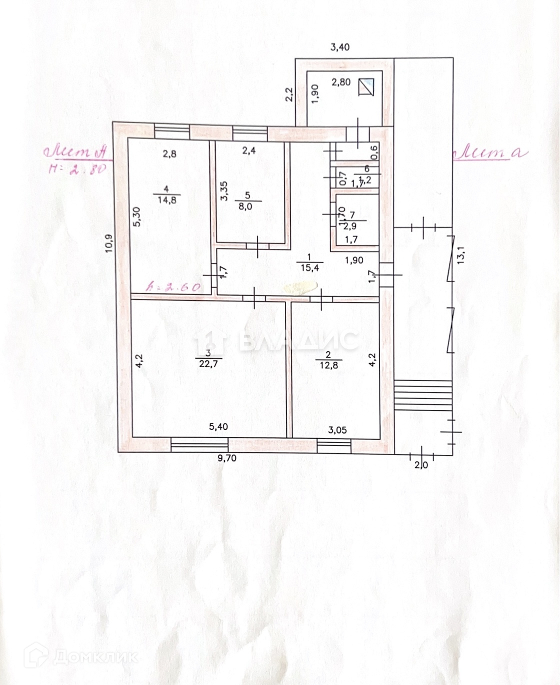 Высота потолков 2.6 м